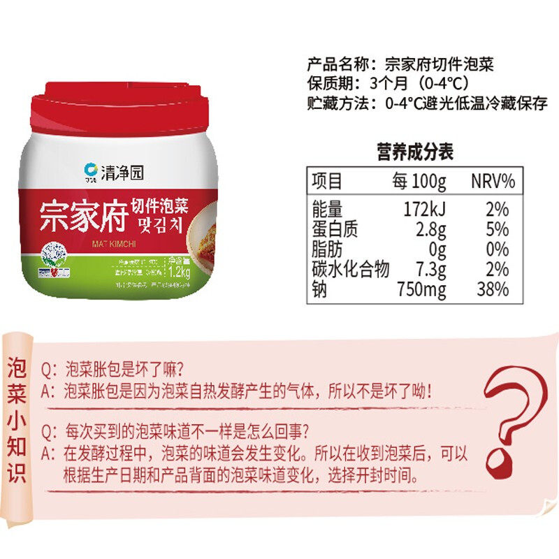 Pure Park Zongjiafu с крышкой Kimchi 1200G из корейской аутентичной кимчи Северо -Восточная Корейская горячая капуста