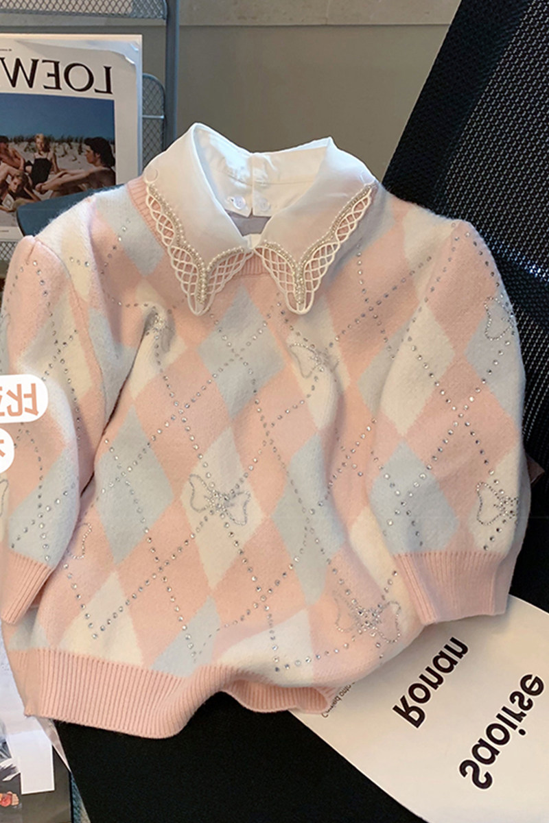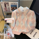 Розовый летний свитер с ромбовидным узором подходит для мужчин и женщин, дизайнерский трикотажный комплект, в стиле Шанель, короткий рукав, тренд сезона