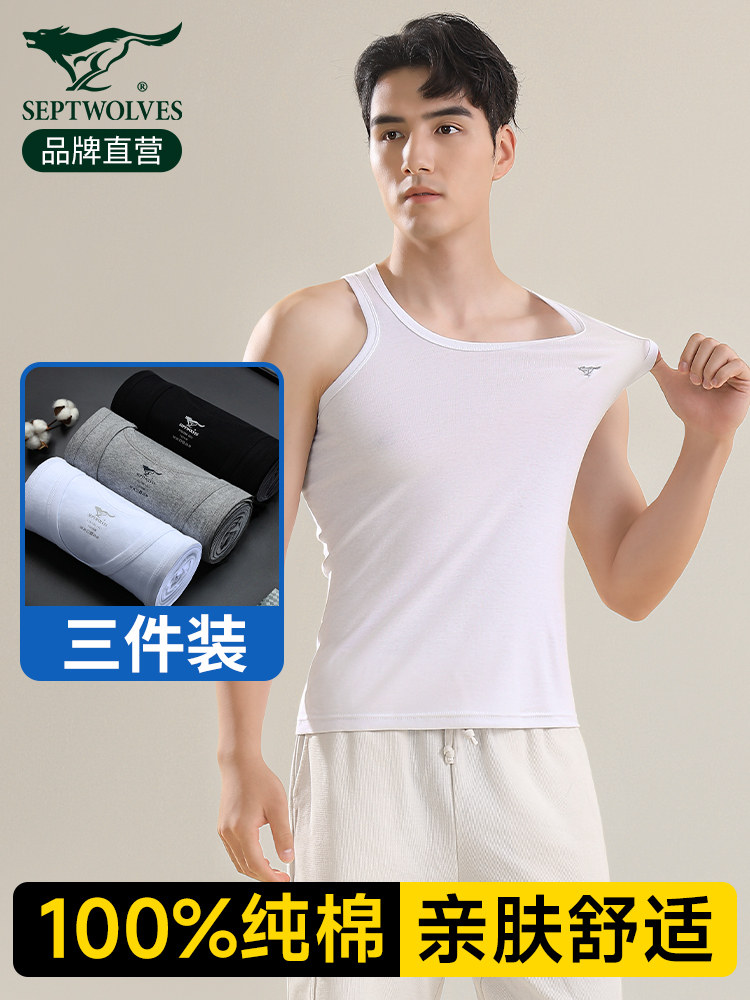 Septwolves, мужской хлопковый спортивный базовый белый жилет, впитывает пот и запах
