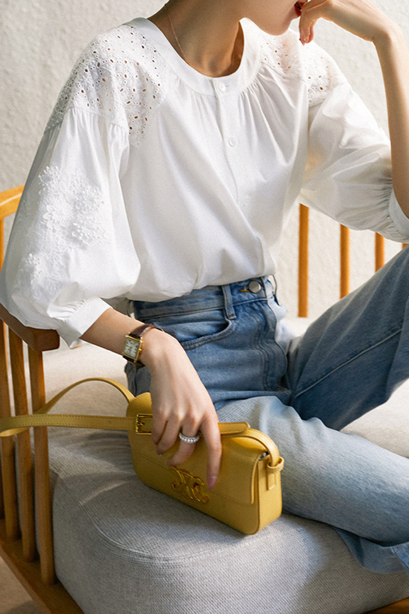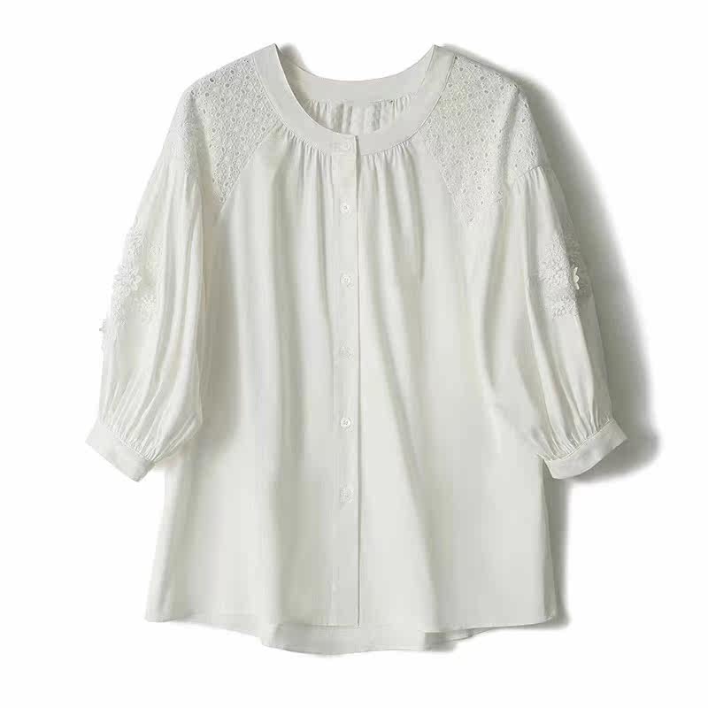 Белый фонарь с круглым воротником, универсальная футболка, с вышивкой