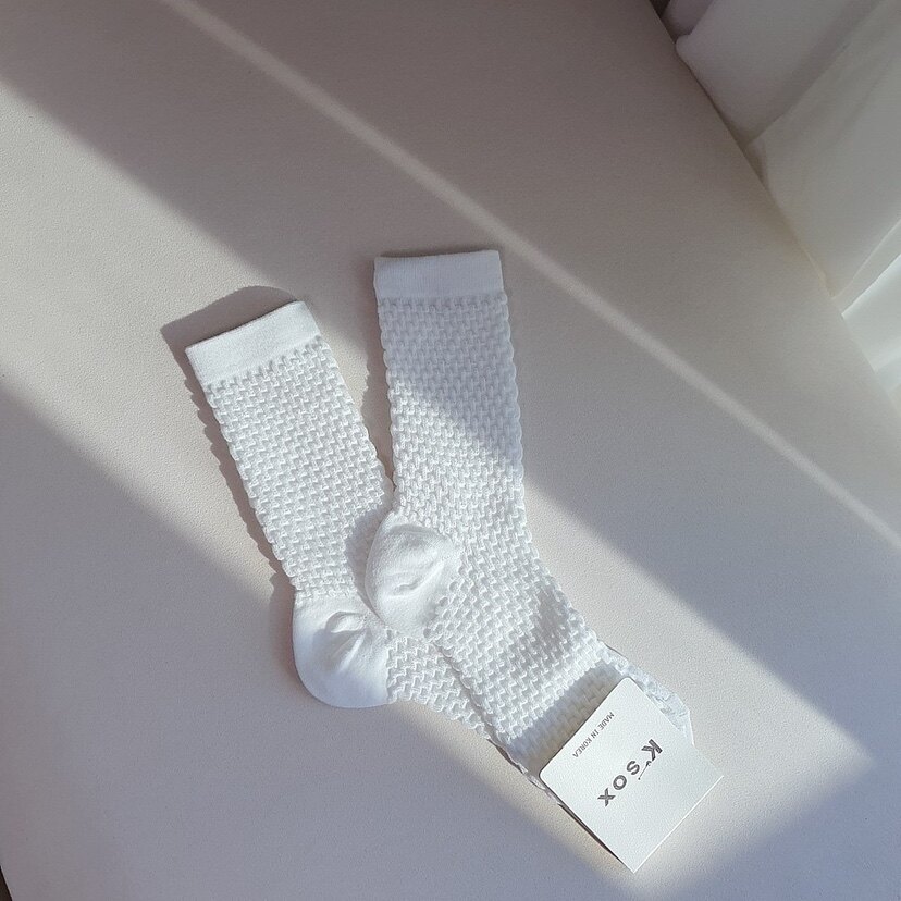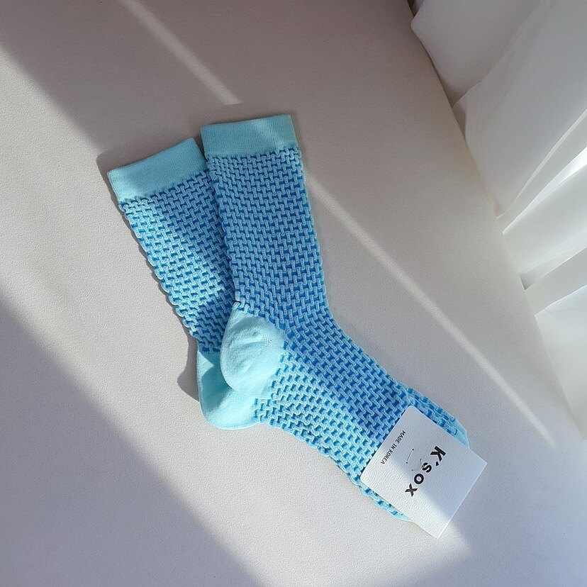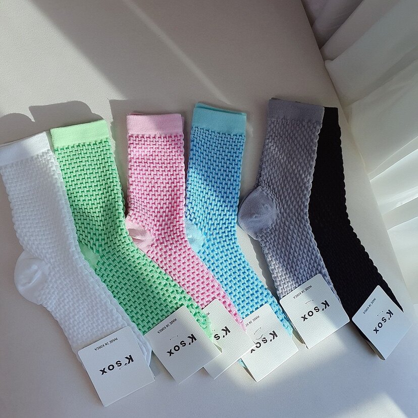 Тонкие модные цветные южнокорейские гольфы, дышащий плетеный товар, (в наличии на складе)