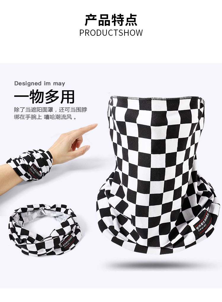Маска, шахматы, клипсы, шарф подходит для мужчин и женщин, защита от солнца, с защитой шеи