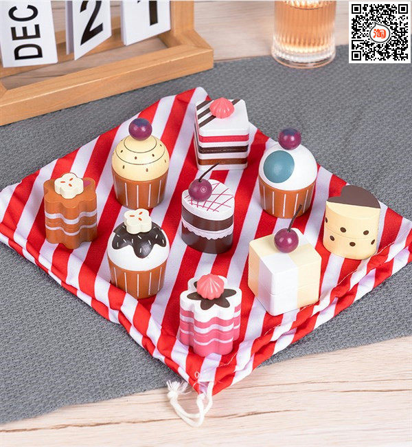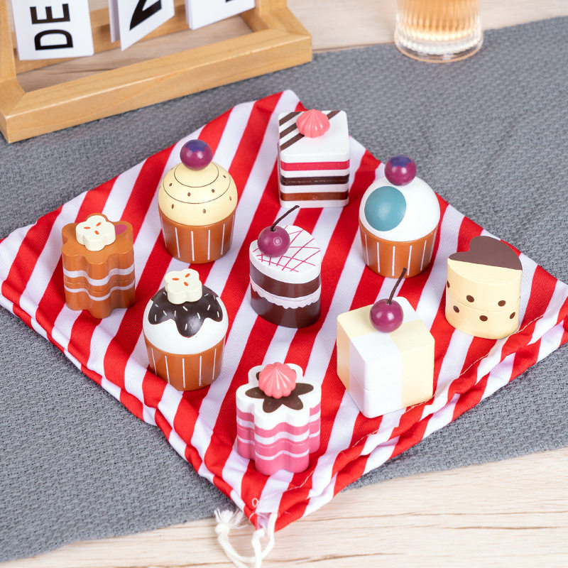 Деревянная детская семейная десертная брендовая игрушка, послеобеденный чай, комплект, тканевый мешок, система хранения, подарок на день рождения