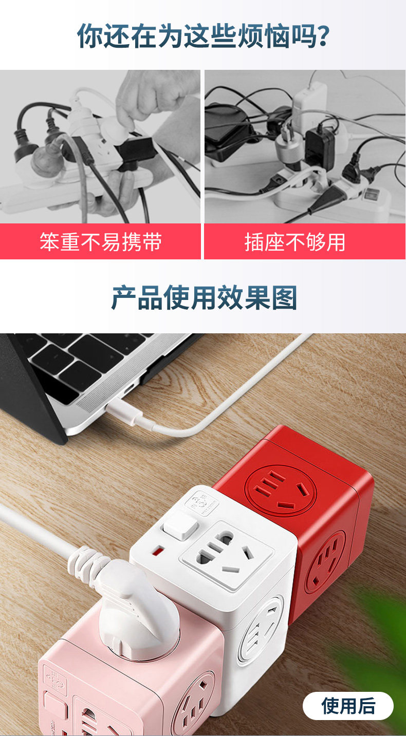 Cube Cube Cube Converter Converter Wireless Plug -In Glueg Division Multi -функциональная USB -обратная штекерная головка