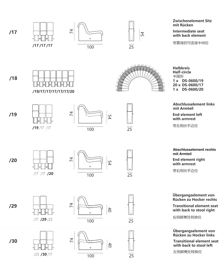 Швейцарский импортный диван в форме змеи в форме змеи DS-600