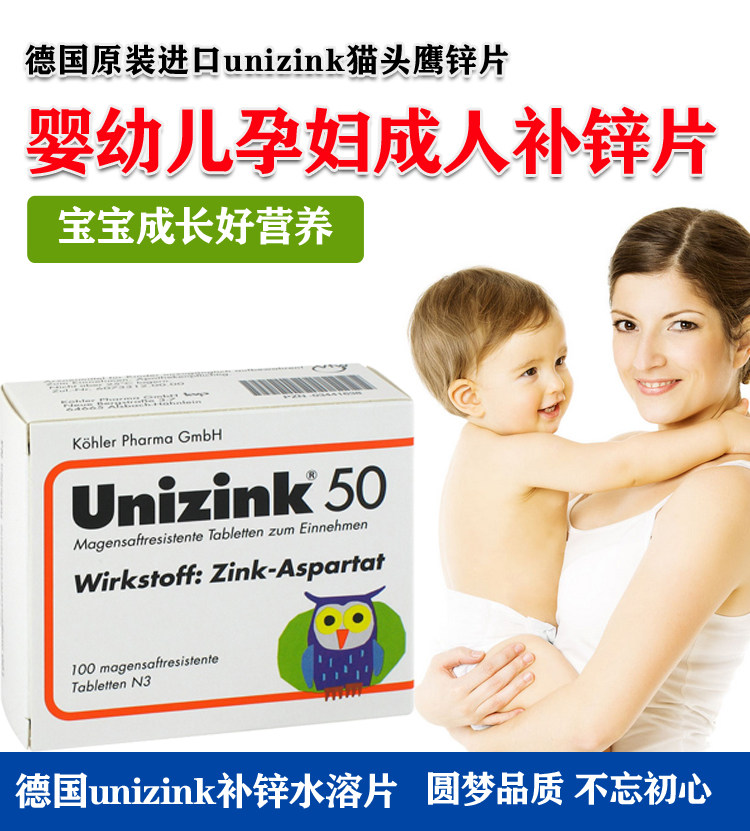 Германия Unizink Owl Zinc Tablet 100 Таблетки энтер -энтерорамных добавок с цинком и маленькие дети для улучшения пятна аппетита