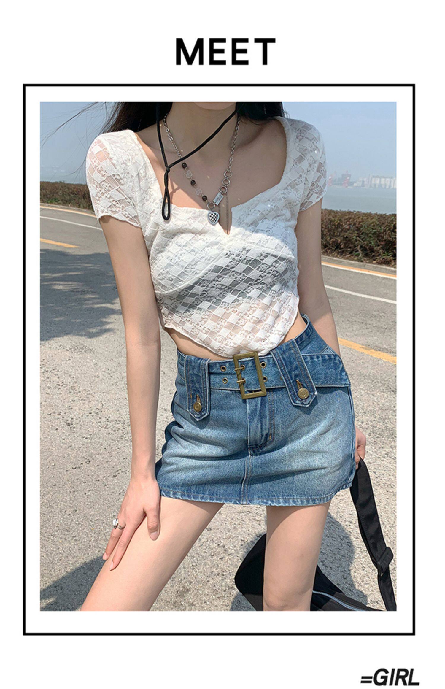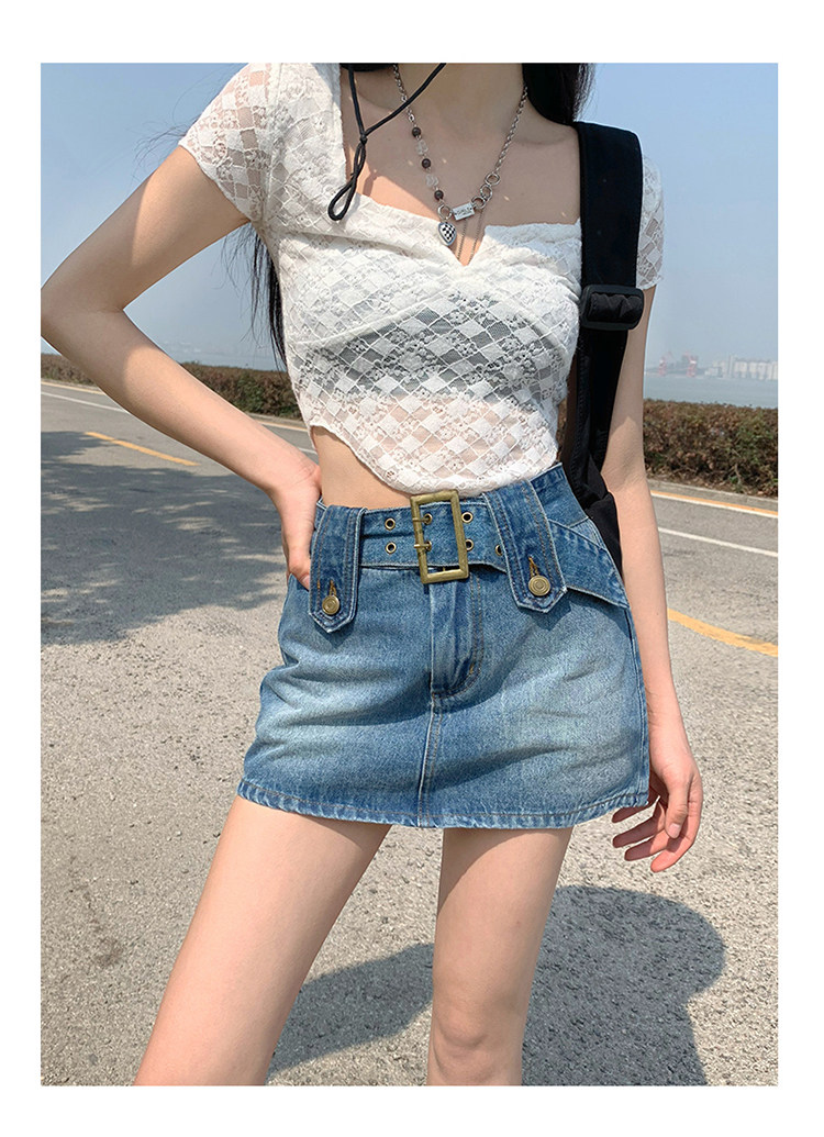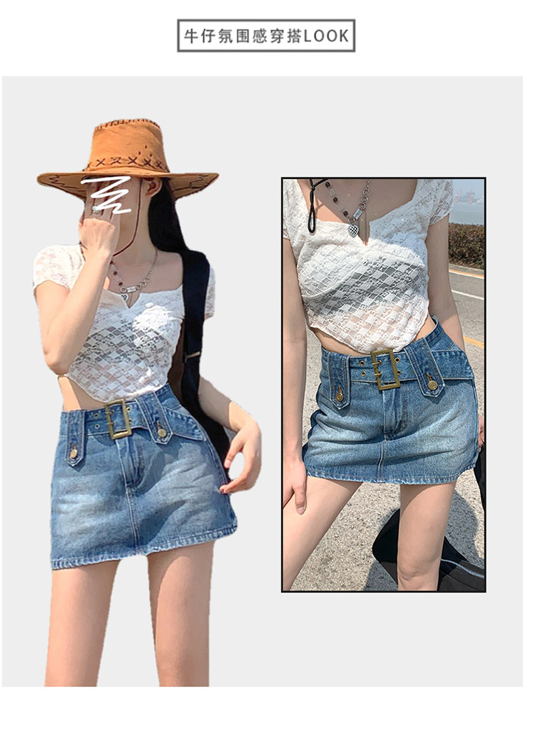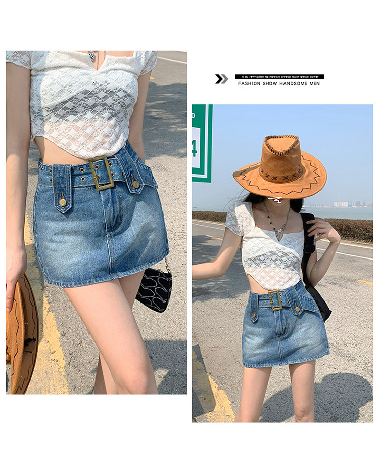 Летняя приталенная дизайнерская джинсовая юбка, высокая талия, с акцентом на бедрах, А-силуэт, тренд сезона