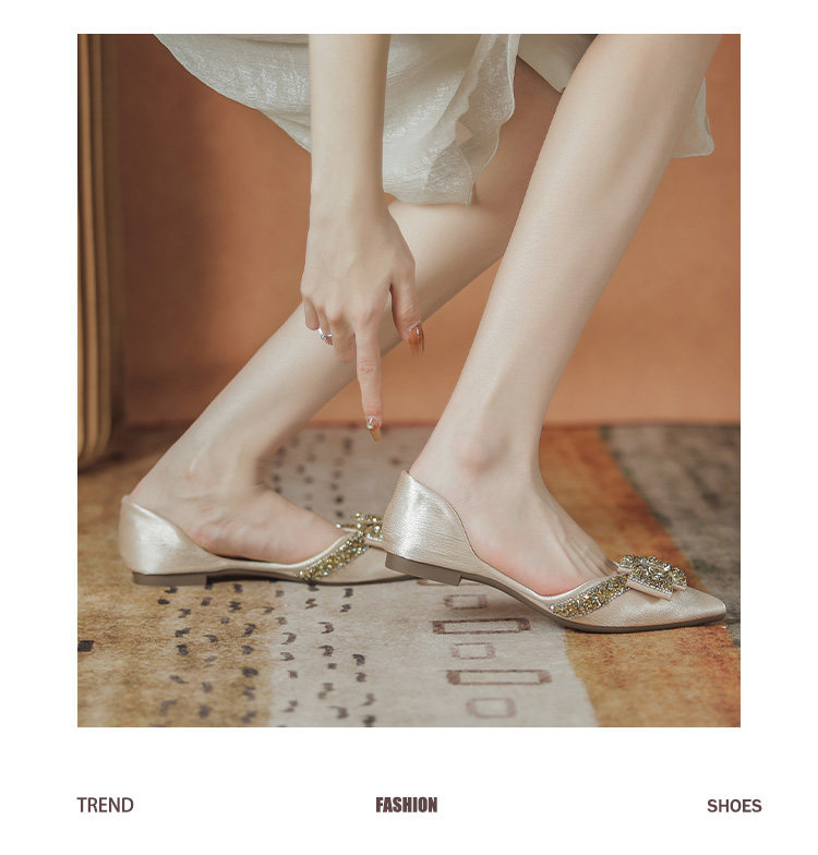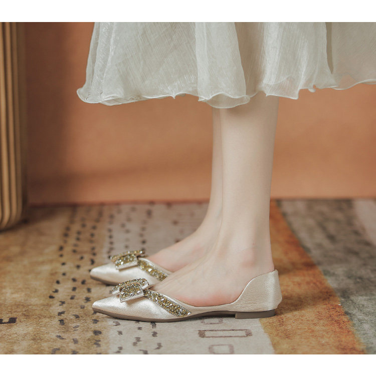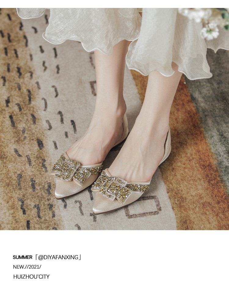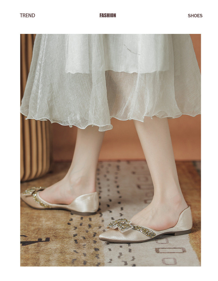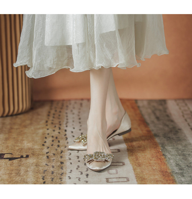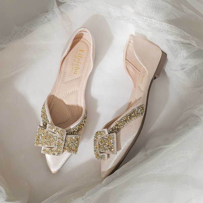 Женские туфли на плоской подошве с острым носком, лето 2022, новый стиль, стразы, размер 41-43, большой размер с юбкой, туфли-лодочки, всесезонная обувь для ленивых