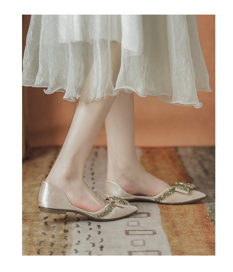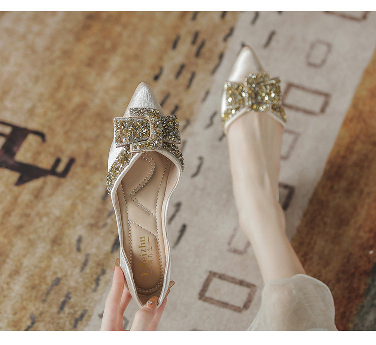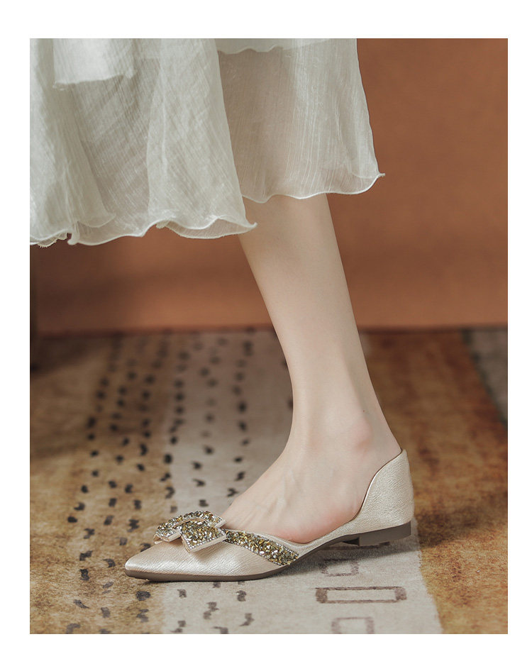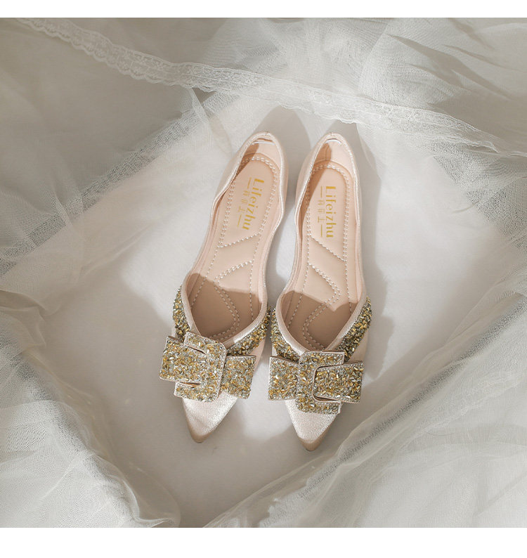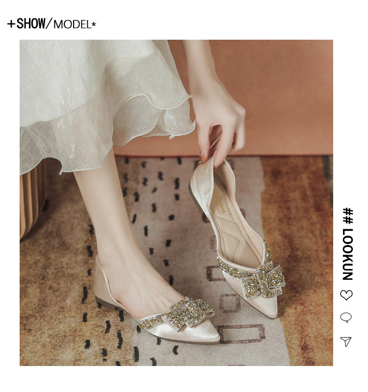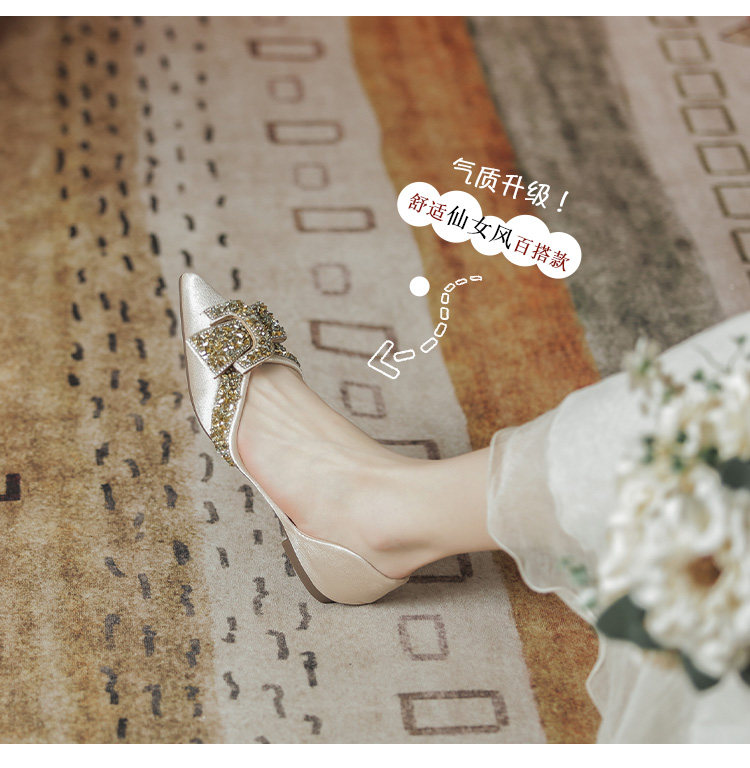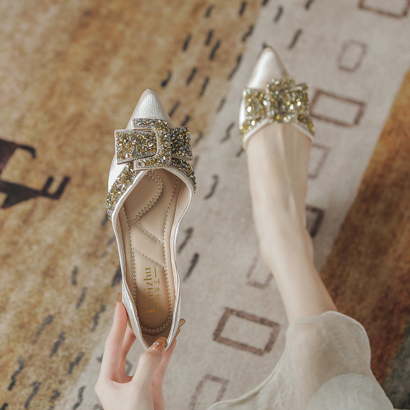 Женские туфли на плоской подошве с острым носком, лето 2022, новый стиль, стразы, размер 41-43, большой размер с юбкой, туфли-лодочки, всесезонная обувь для ленивых