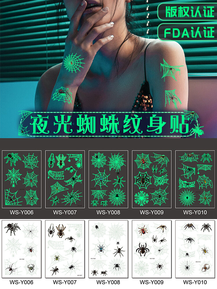 Водостойкие флуоресцентные детские наклейки для лица, наклейка, зеленая татуировка, xэллоуин