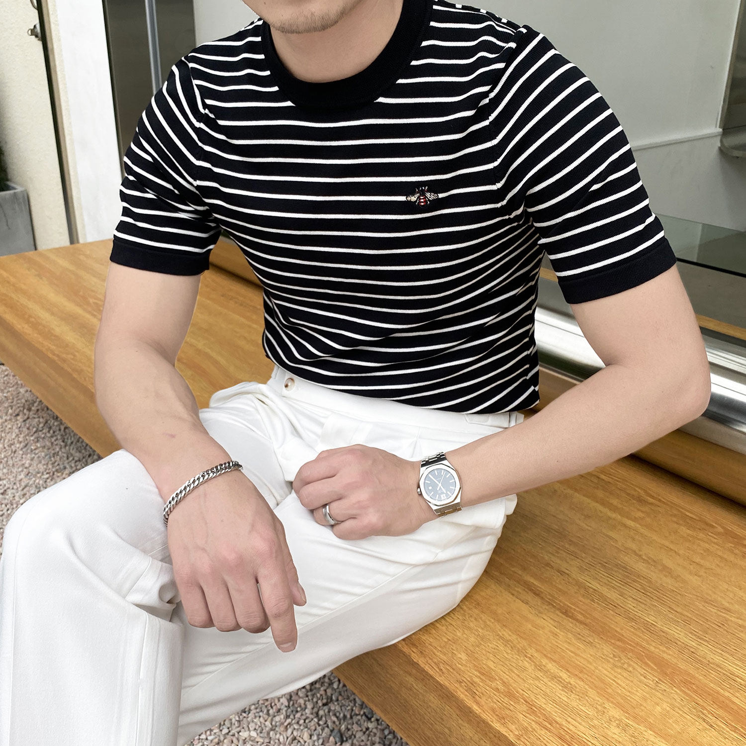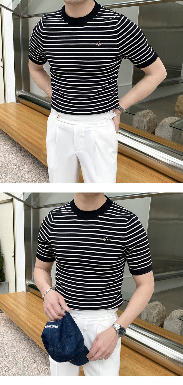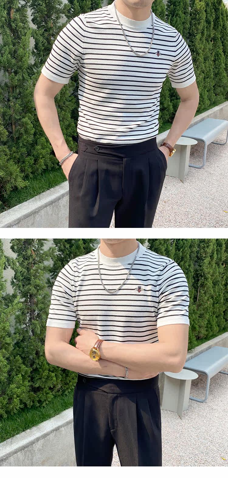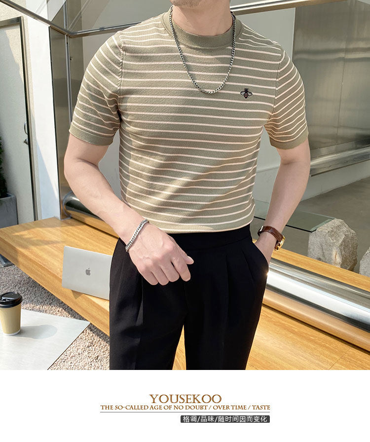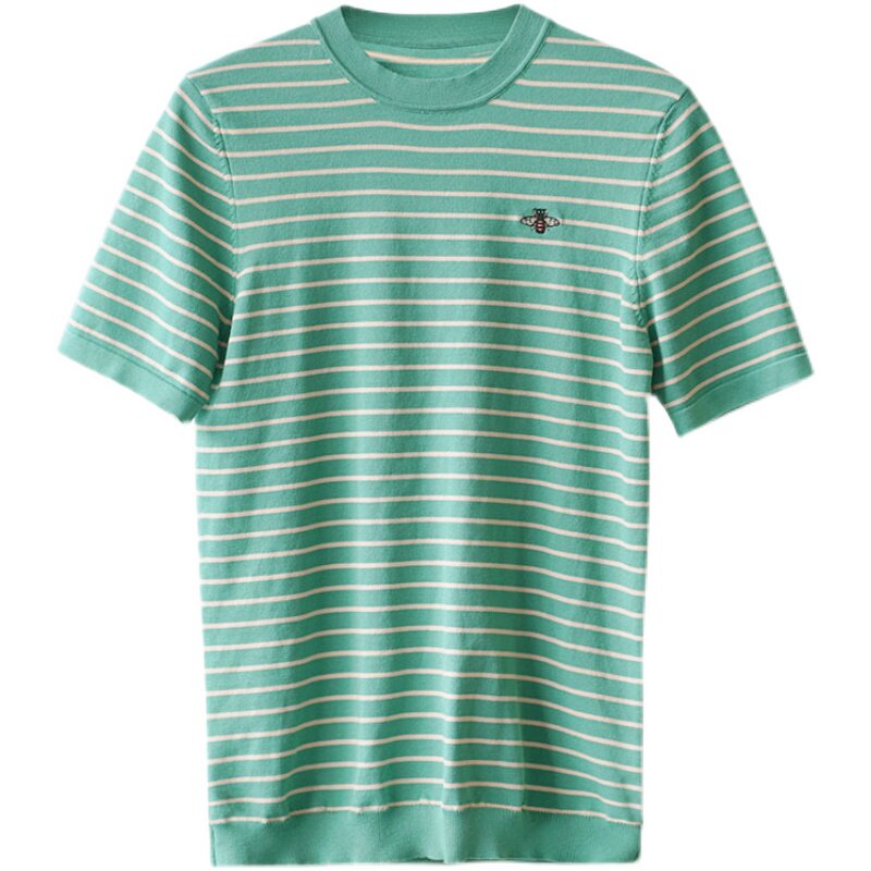 Летняя футболка с коротким рукавом с круглым воротником, трикотажный свитер для отдыха, облегающий крой, с вышивкой