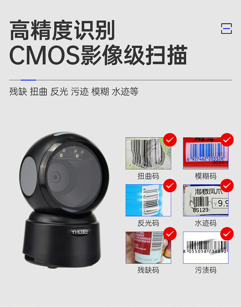 YHDAA QR -код сканирующей платформу супермаркет кассир штрих -код Scanning Box Aphacty Product Scanner Scanner