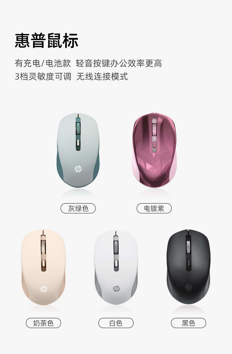 HP, беззвучная милая беспроводная мышь, ноутбук подходит для мужчин и женщин с зарядкой, портативная мышка