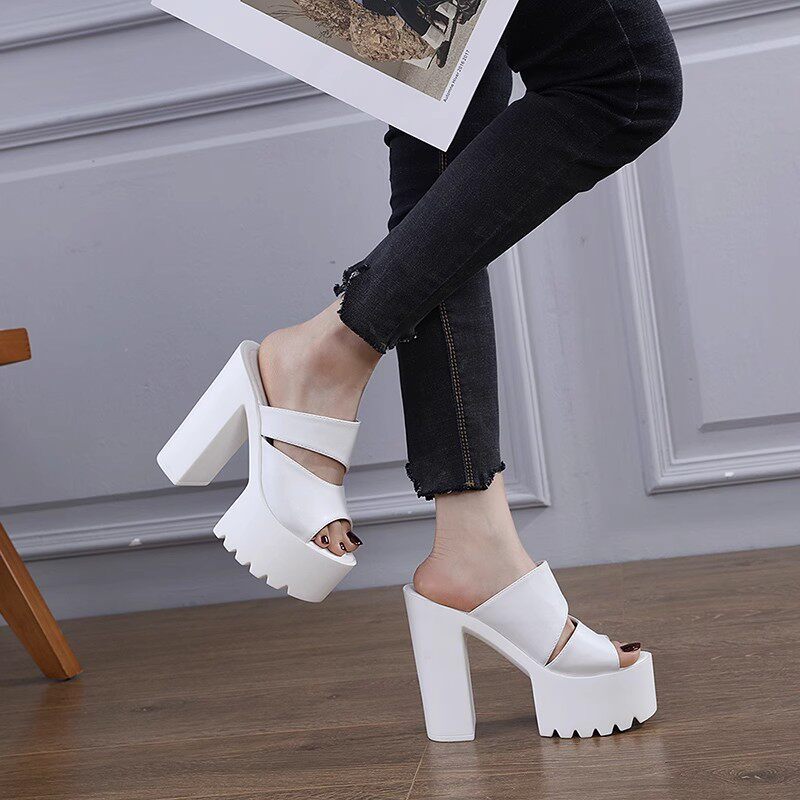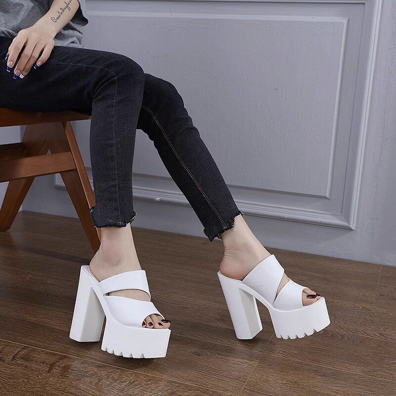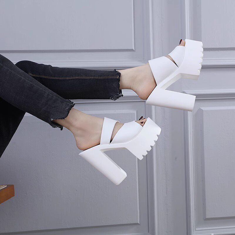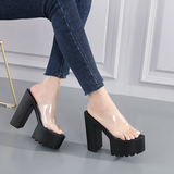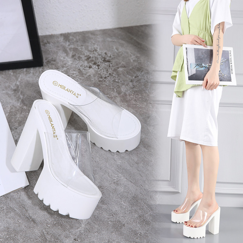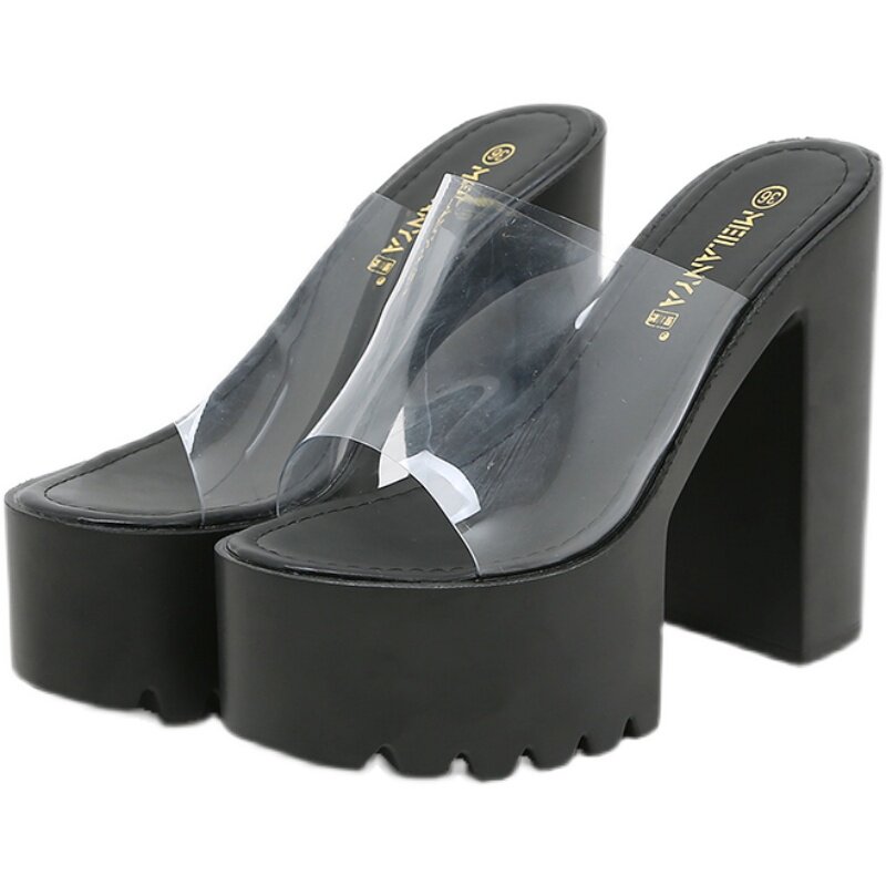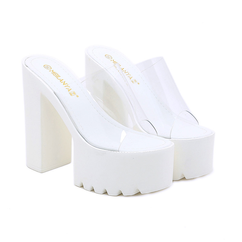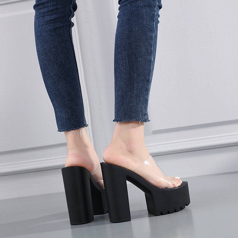 Сексуальные водостойкие прозрачные сандалии на высоком каблуке, спортивная обувь, лента, манекен головы на платформе, тапочки, 16см