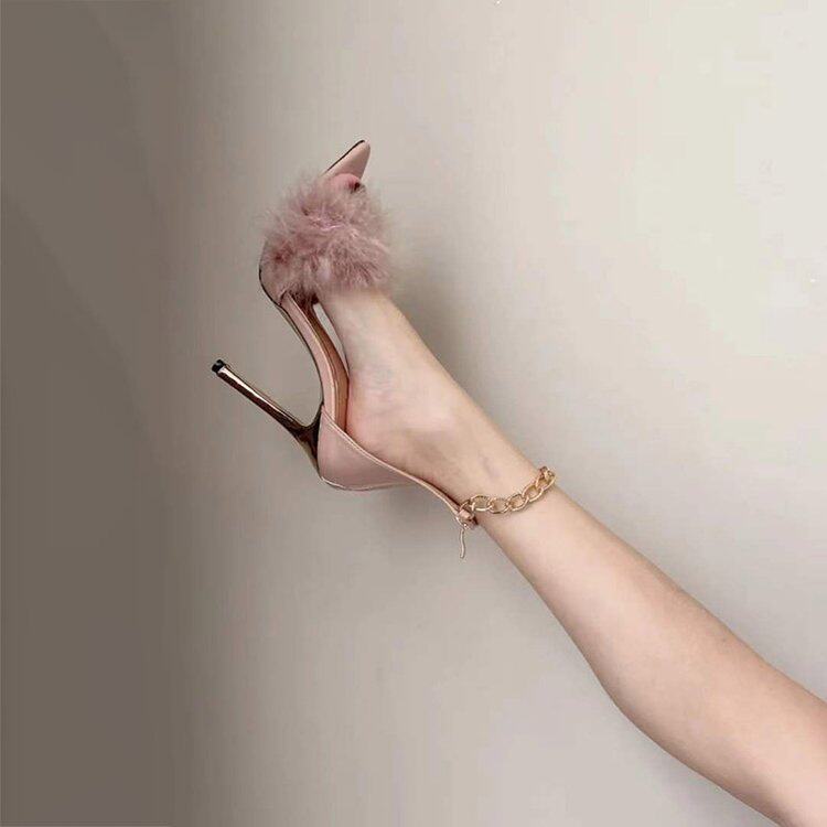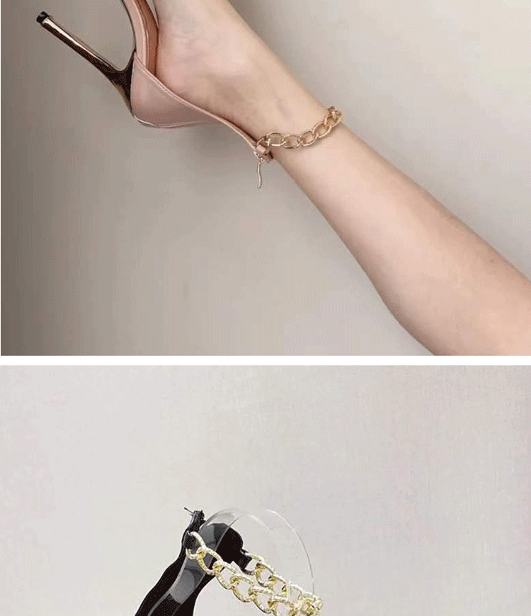 Летние туфли на высоком каблуке, металлическая цепь с ремешком, босоножки, 2024 года