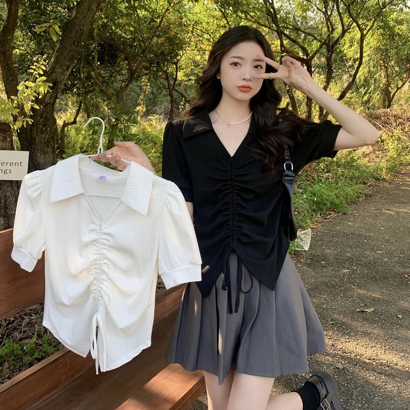 Летняя короткая футболка с коротким рукавом, рубашка, большой размер, по фигуре, на шнурках