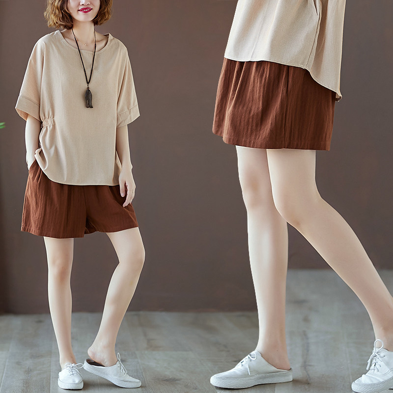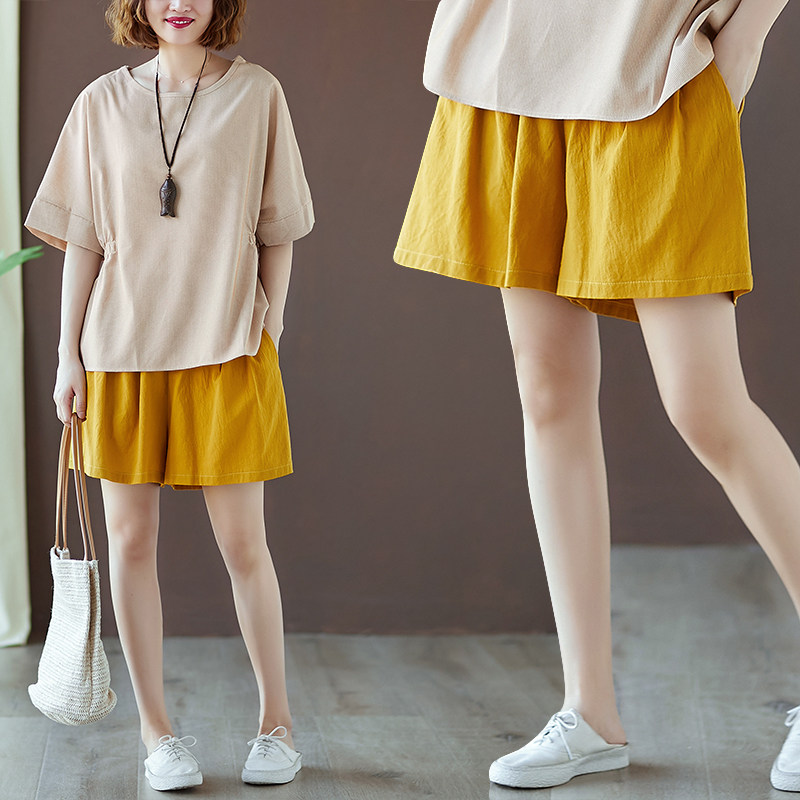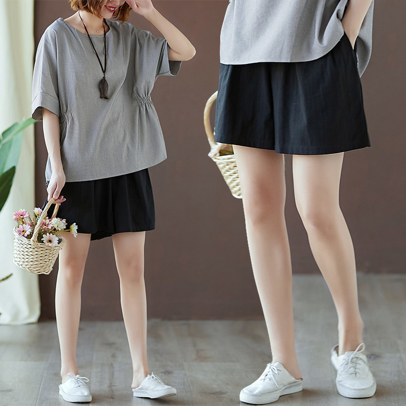 Шорты, летние приталенные штаны для отдыха, из хлопка и льна, большой размер, оверсайз, эластичная талия, А-силуэт