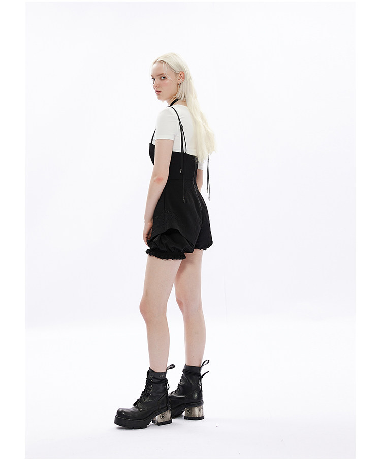 Штаны, комбинезон, фонарь, шорты, комплект, в стиле панк, эффект подтяжки