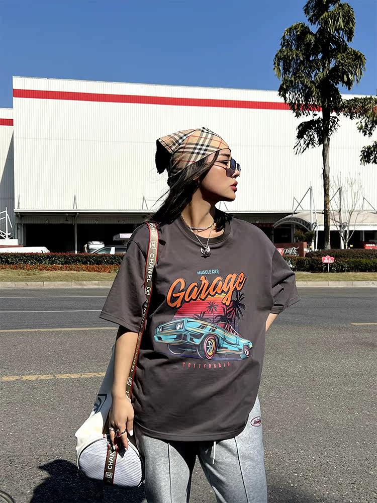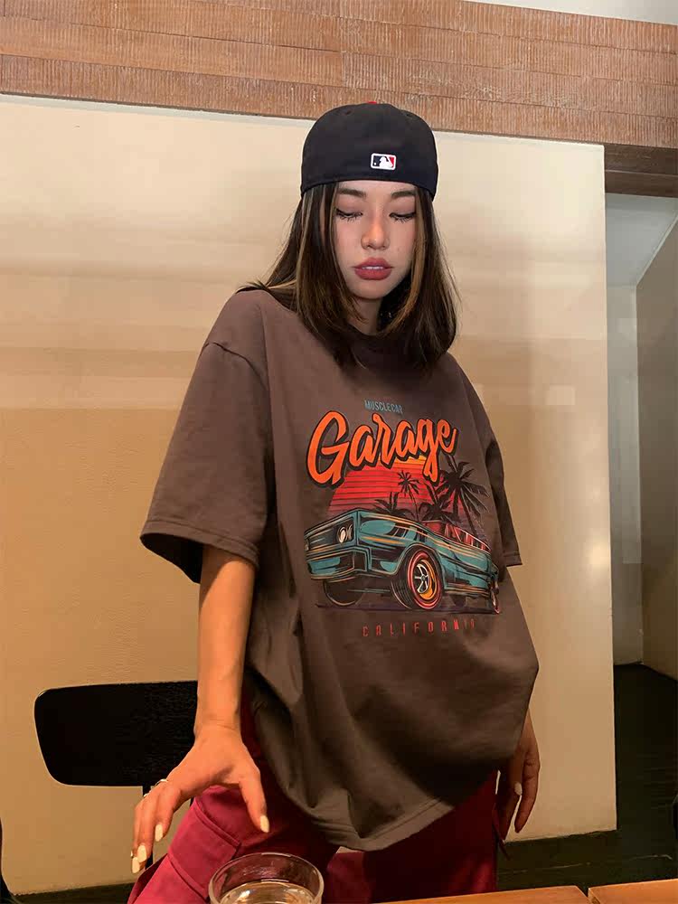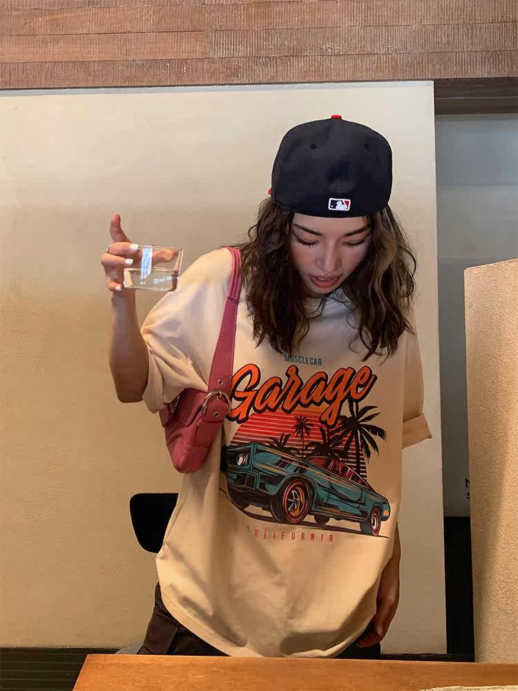 Хлопковая летняя ретро брендовая футболка с коротким рукавом с круглым воротником для отдыха, в американском стиле