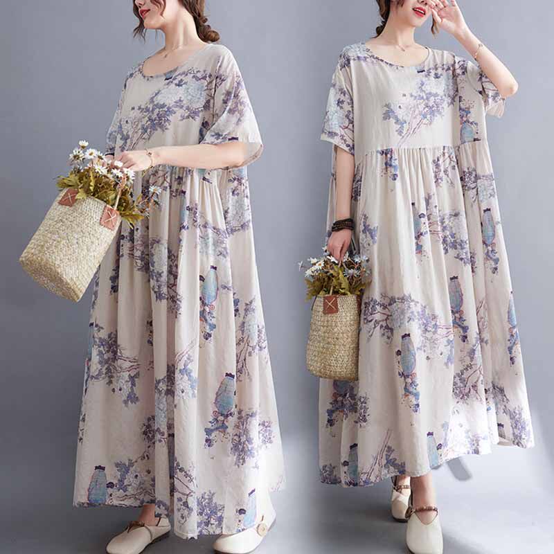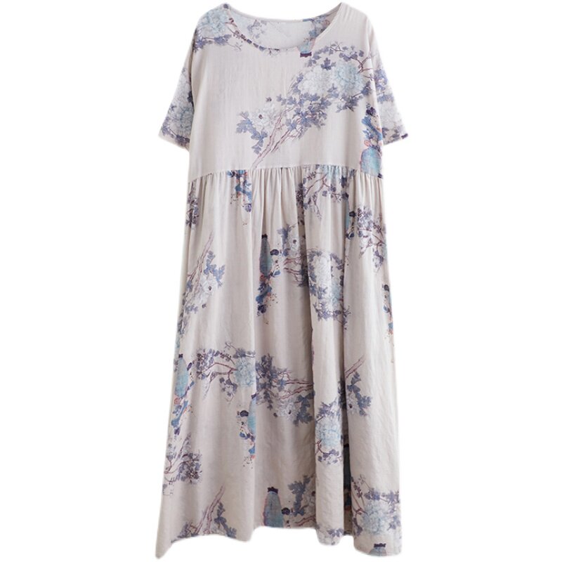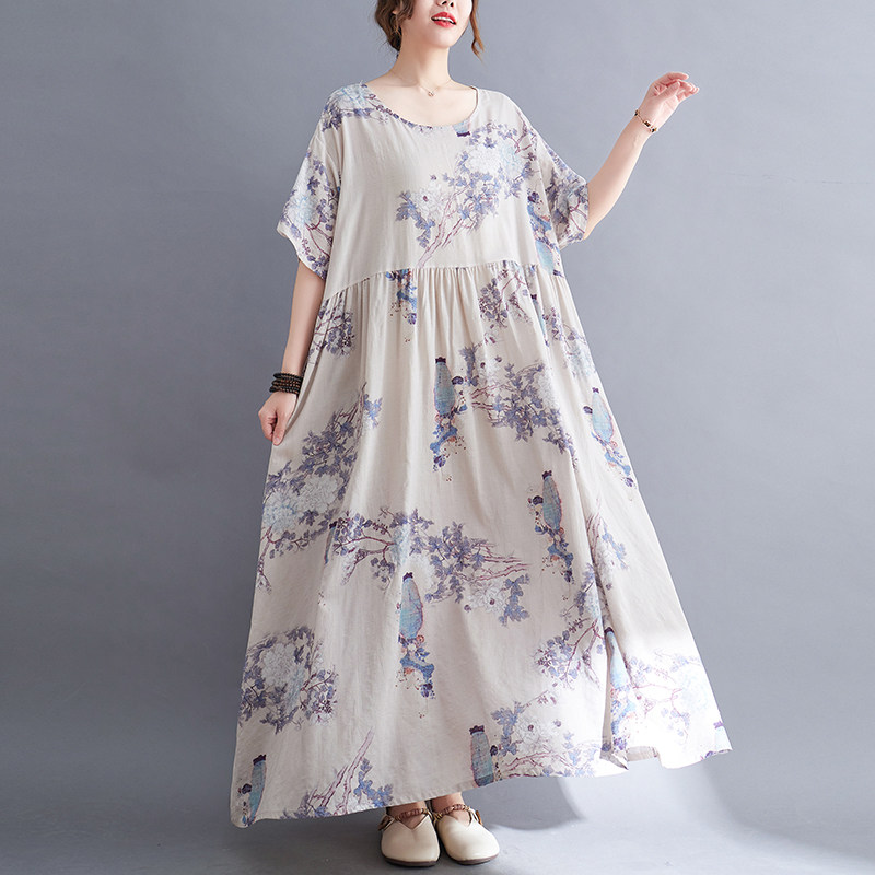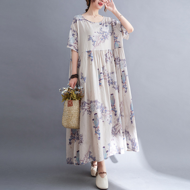 Летнее модное платье для отдыха, большой размер, свободный крой, из хлопка и льна, короткий рукав, оверсайз