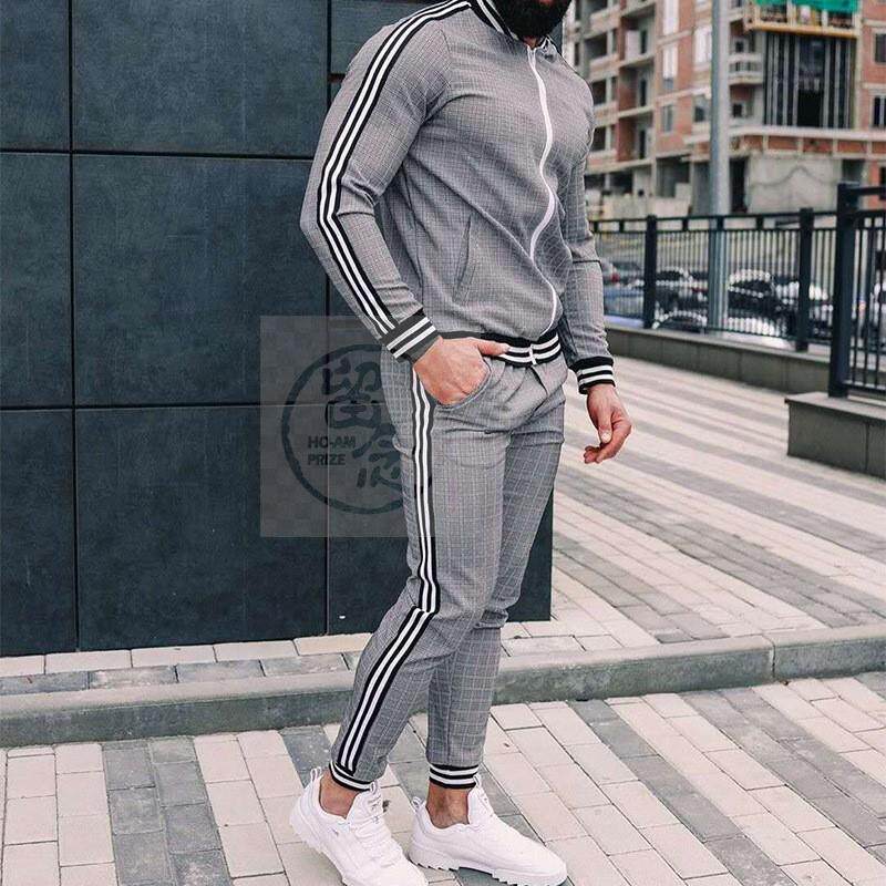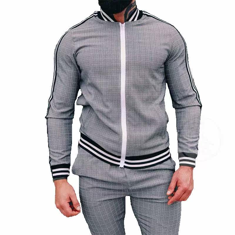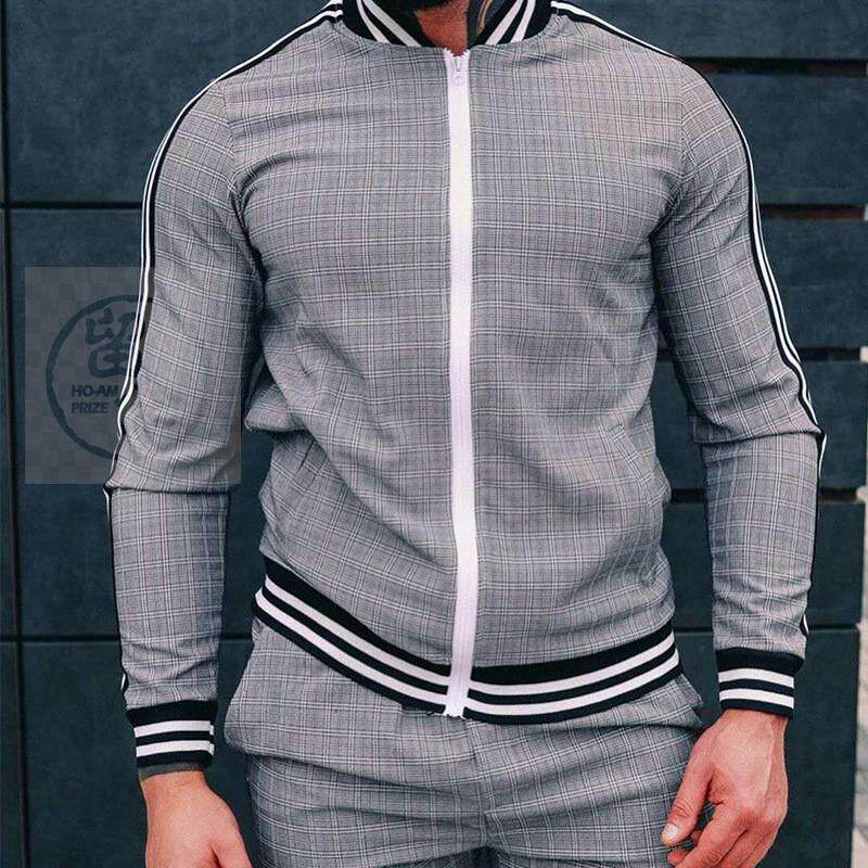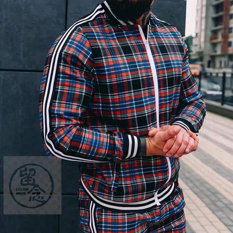 %Осенняя повседневная мужская одежда мужская спортивная клетчатая молния на молнии