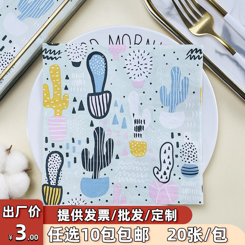 Бумажные салфетки, цветная бумага, кактус, принт