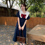 Летняя одежда, военно-морское платье с бантиком, модная юбка, коллекция 2022, большой размер