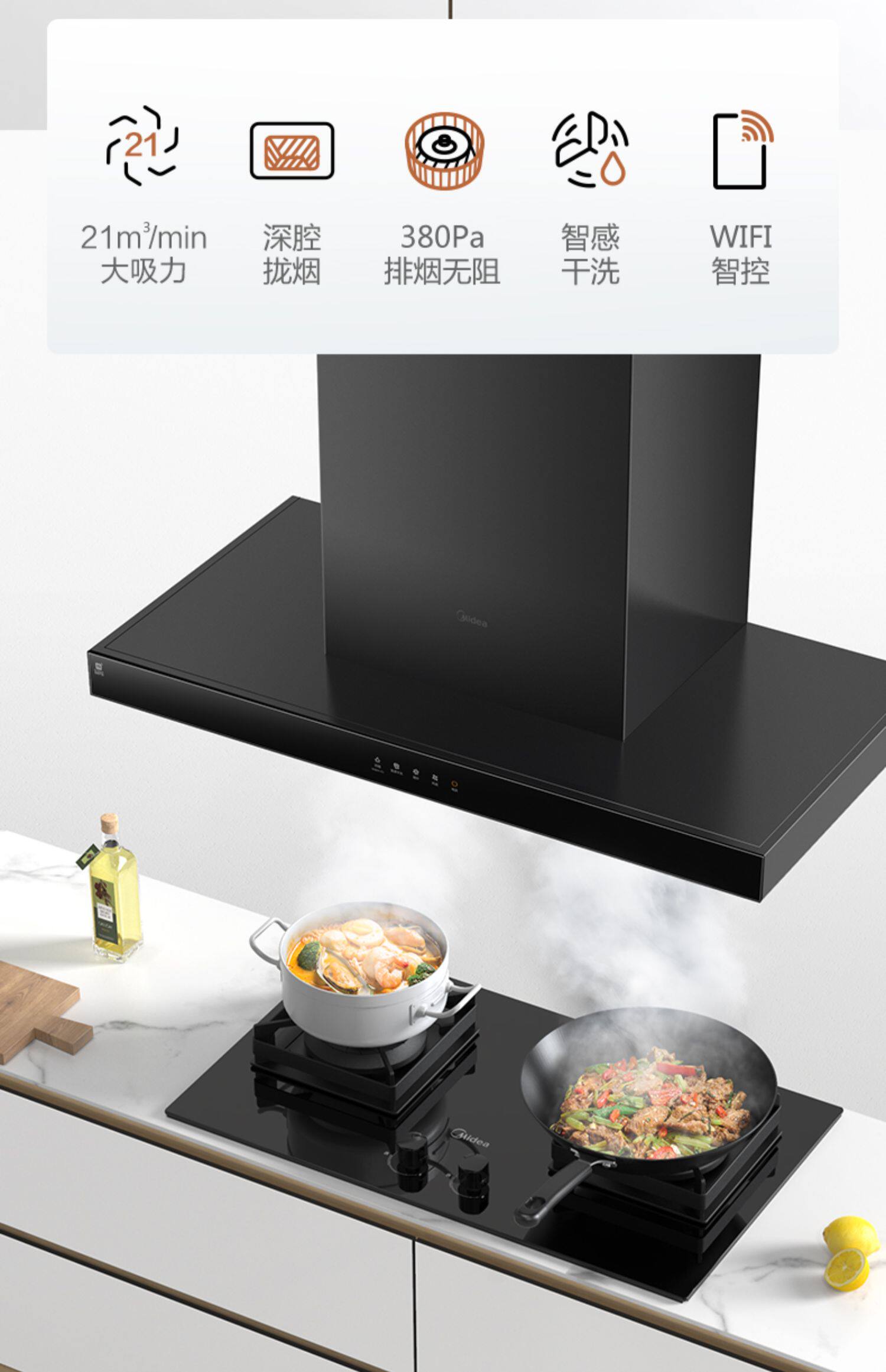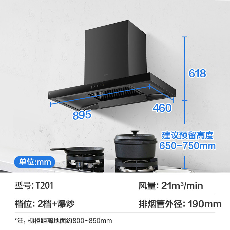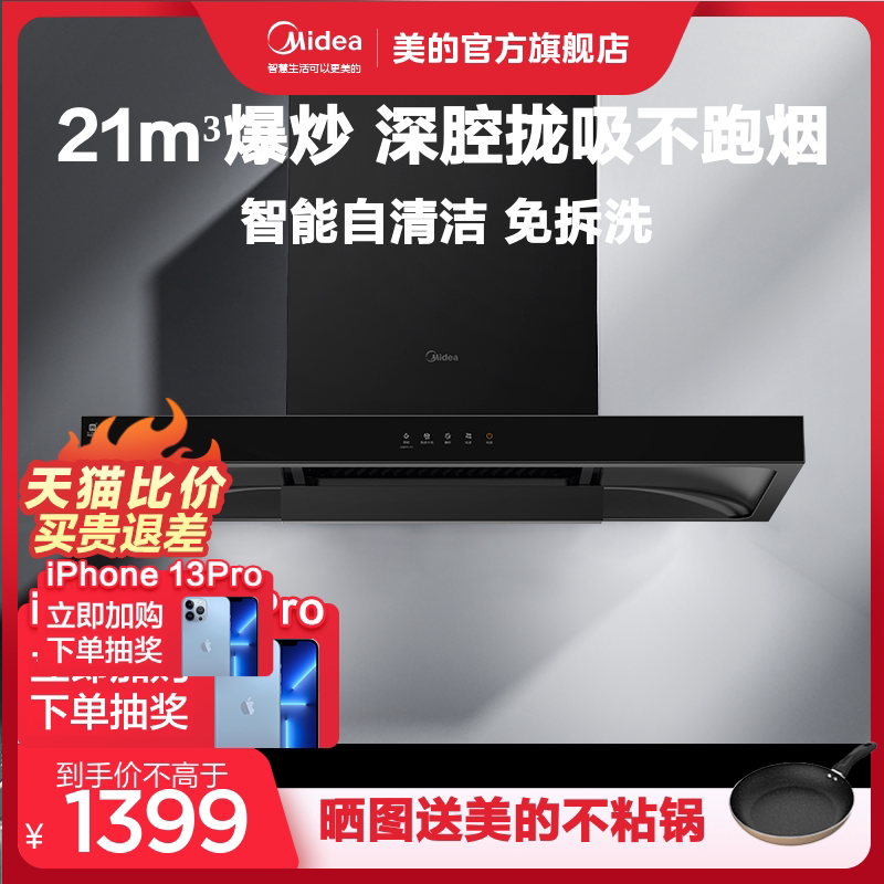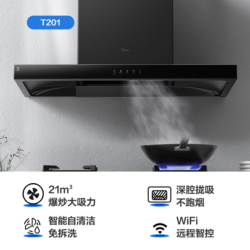 Midea Range Hood T201 Higkee Higketer's Home Kitchen Big Suisction Top Suction European Style Self -Cleaning Douse House выписка