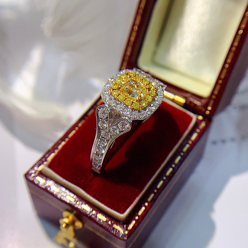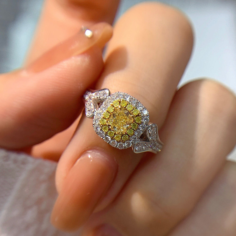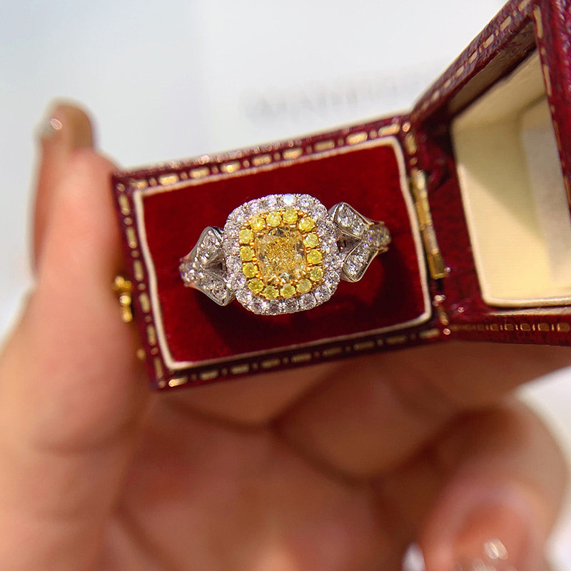 1 карат желтый бриллиант кольцо мойассанит RAING COLURE DIAST NISHE Женская личная настройка Platinum
