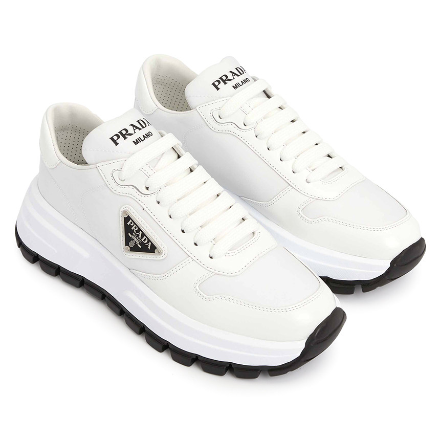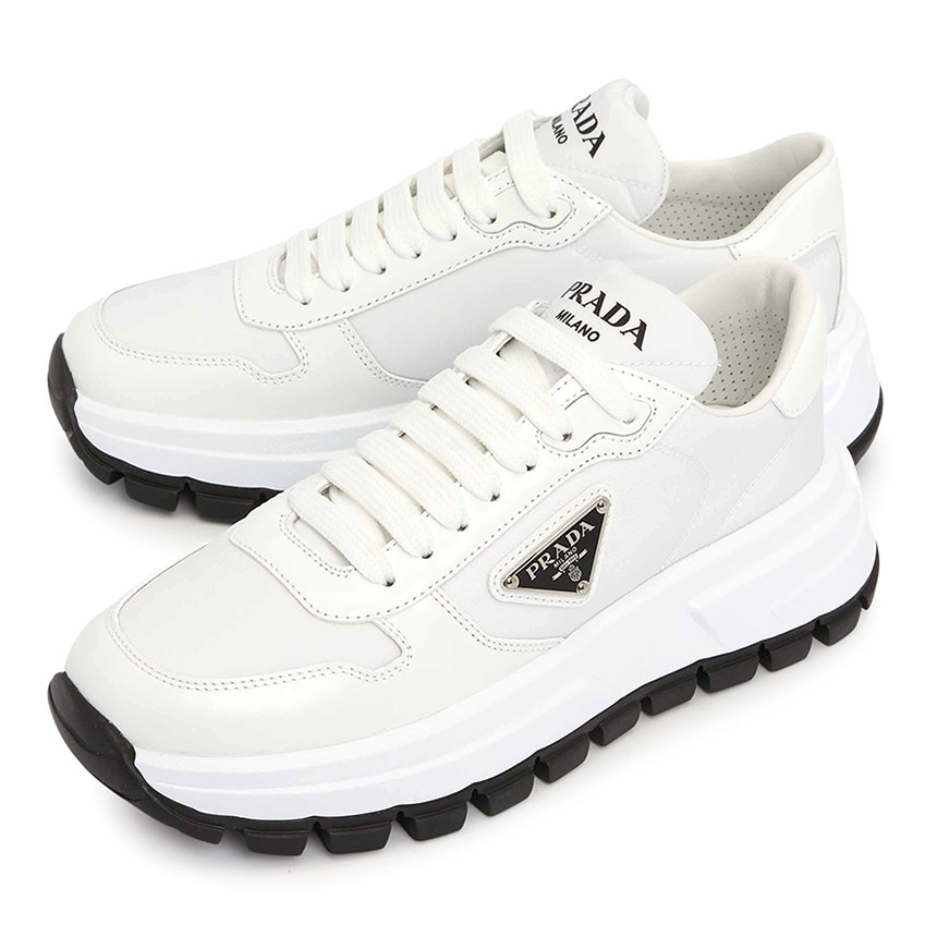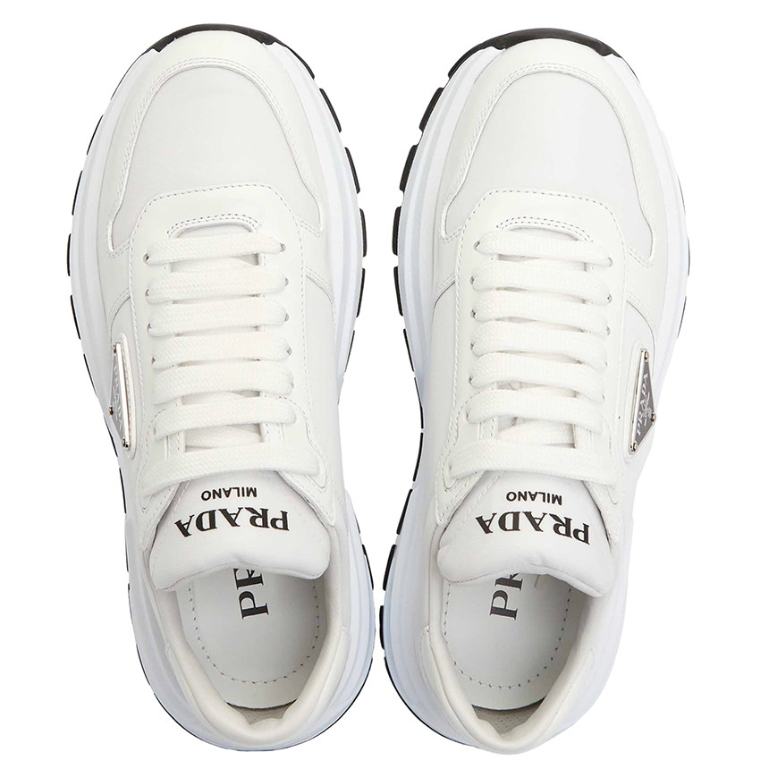 Женские спортивные повседневные туфли Prada из белой кожи с треугольным логотипом и толстой подошвой 1E804M 3LF5 F0964