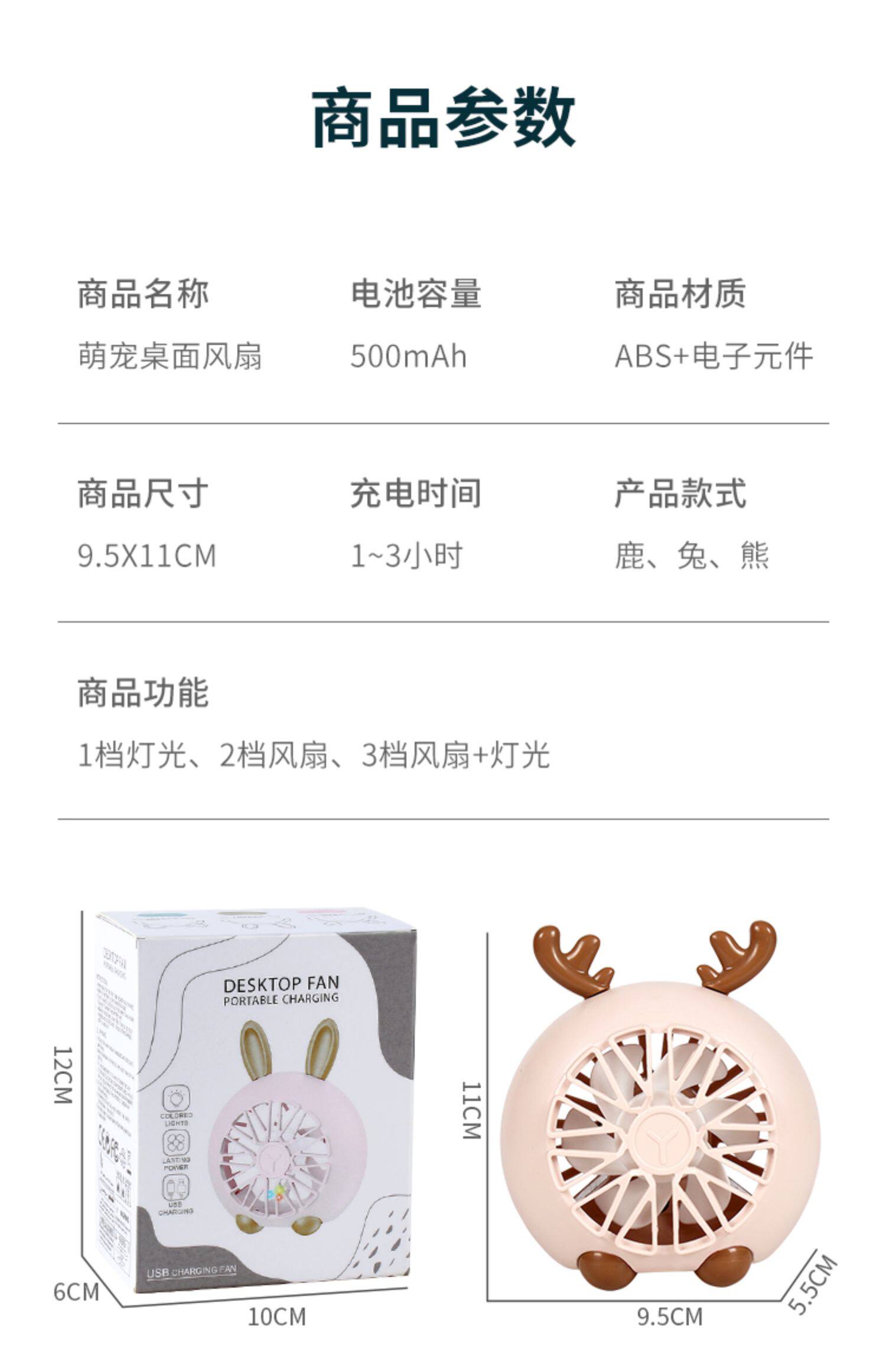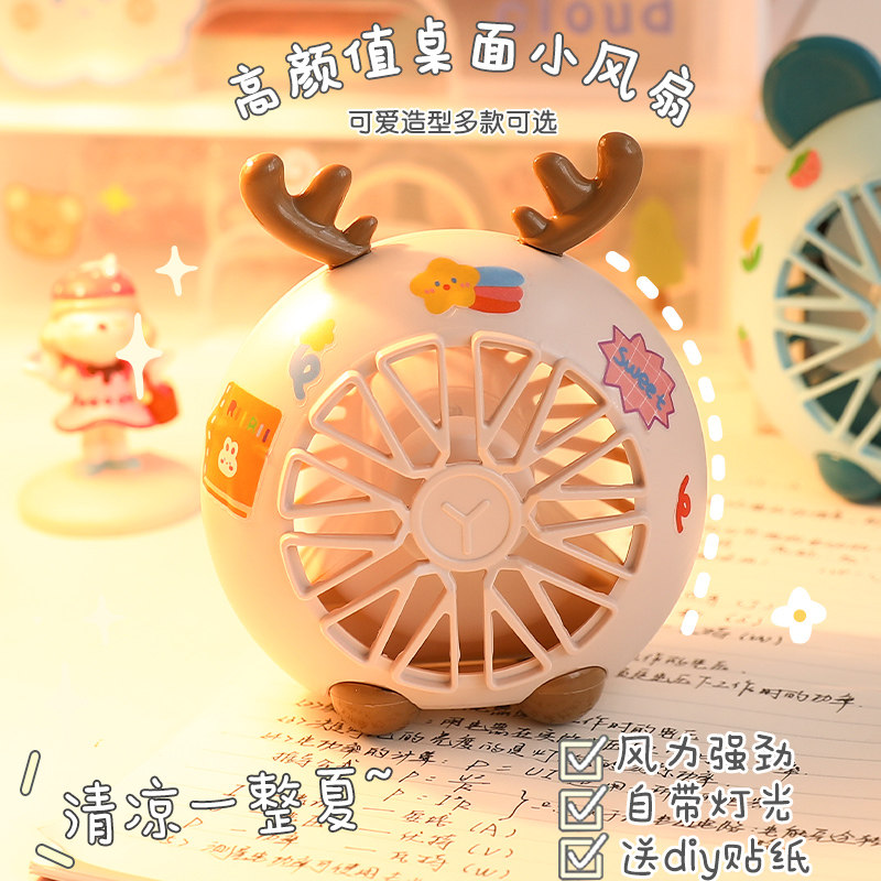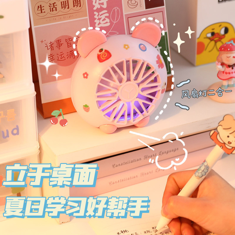 Милый портативный маленький настольный вентилятор для школьников, мигающий свет