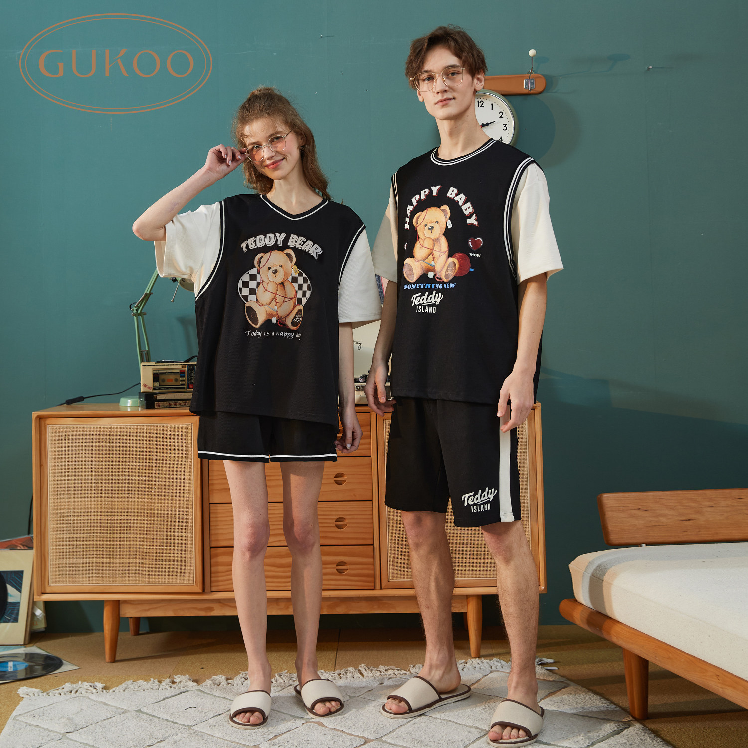 | Цвет: | Женский набор плюшевого мишка, Мужской костюм плюшевого мишка, Плюшевый мишка V -neck Women's Set |