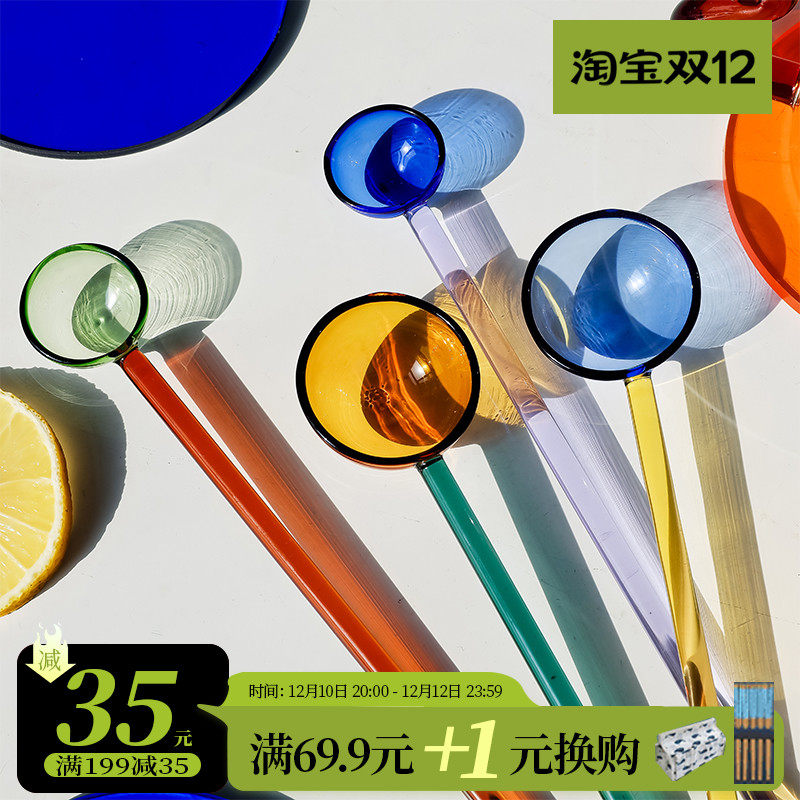- Желтая синяя стеклянная ложка