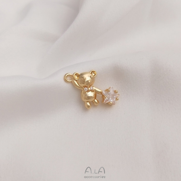 Инкрустация камня с цирконом, милая подвеска, ожерелье и браслет, 14 карат, золотой цвет, с медвежатами, DIY