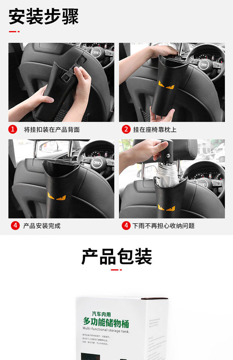 Зонтик для автомобиля с держателем для зонта, система хранения, водонепроницаемая коробка для хранения, фиксаторы в комплекте