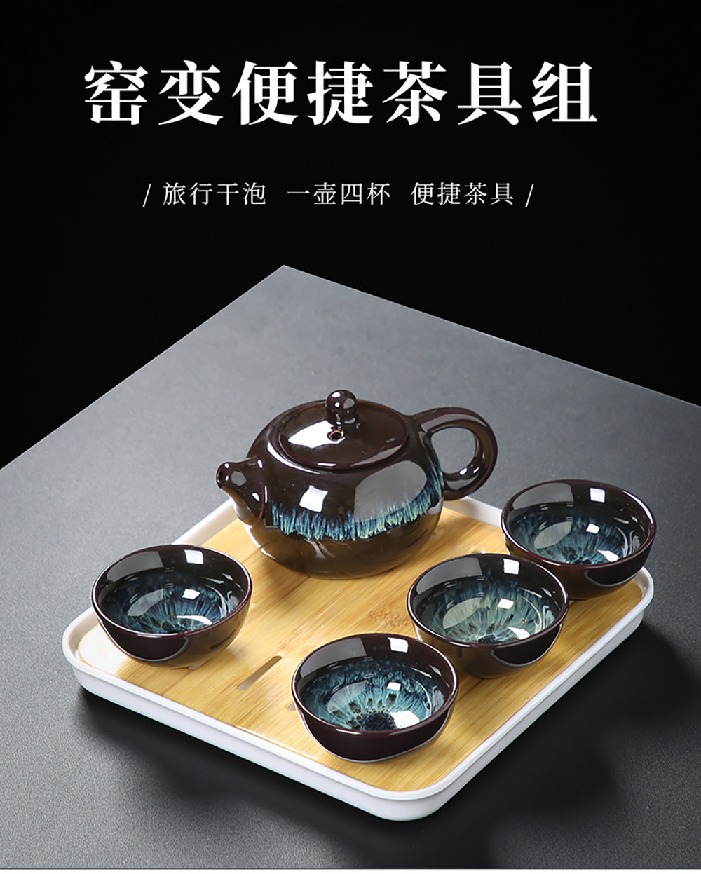 - Jun Kiln West Shi Pot, горшок из четырех стаканов+маленький квадратный белый поднос 20 см 20 см.
