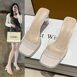Тапочки, обувь на высоком каблуке, летние модные слайдеры, французский стиль, городской стиль