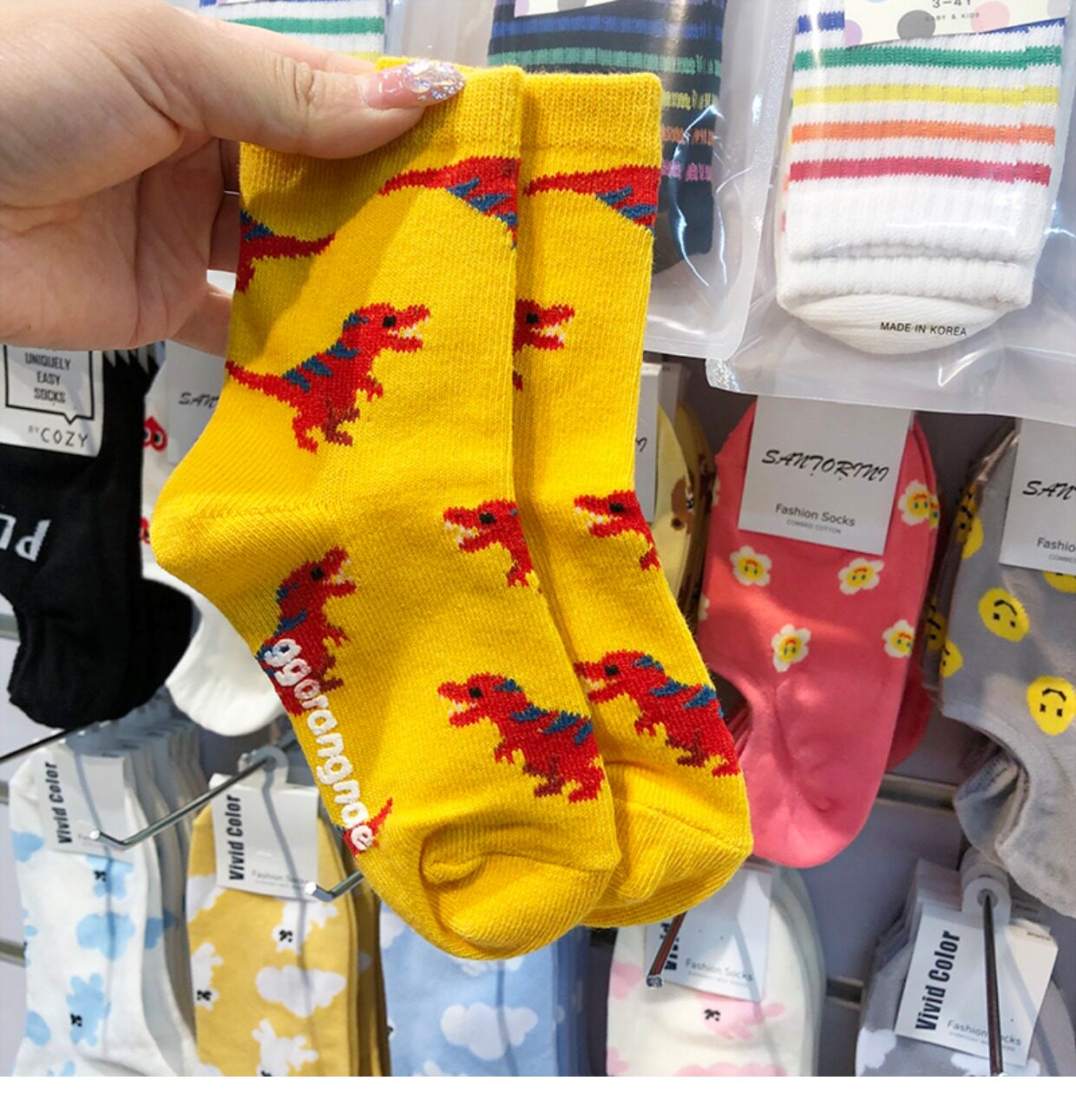 Детские носки, мультяшный товар, детский динозавр подходит для мужчин и женщин, гольфы для школьников и студентов, Южная Корея, новая коллекция, средней длины