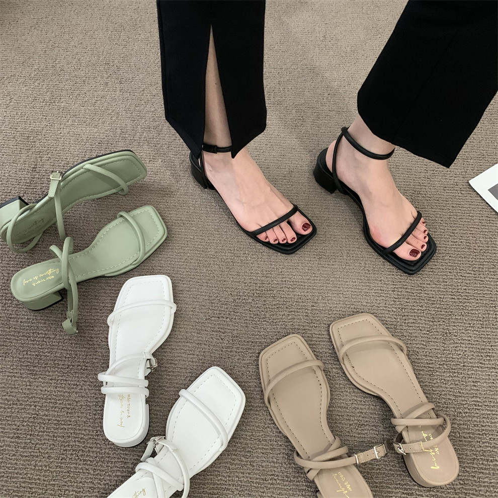 Черные летние сандалии на высоком каблуке, летняя обувь, слайдеры, тапочки, в корейском стиле