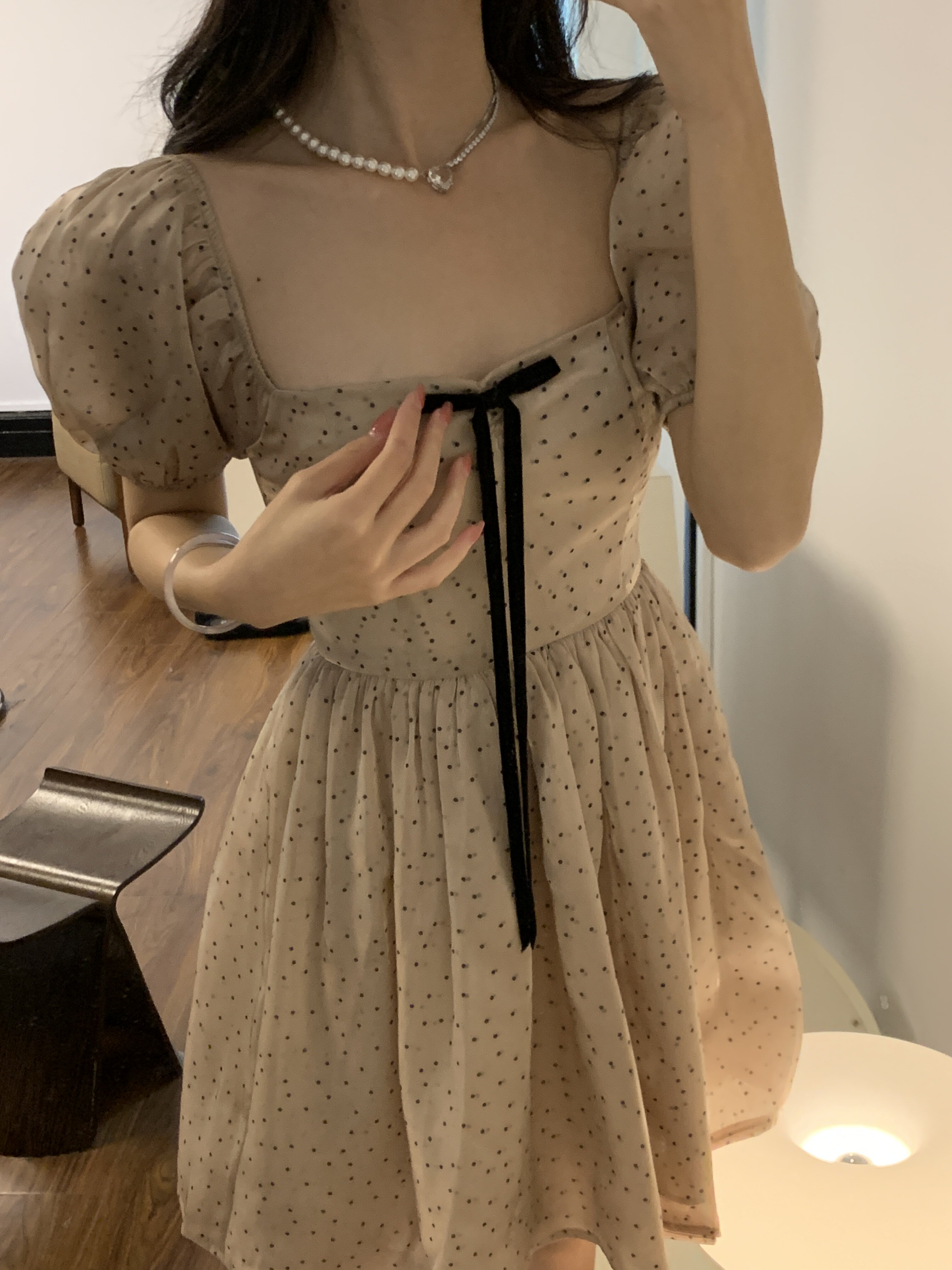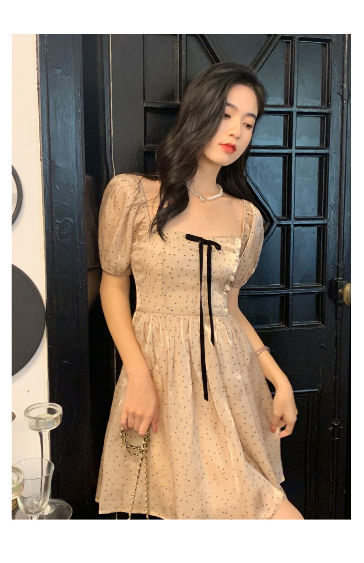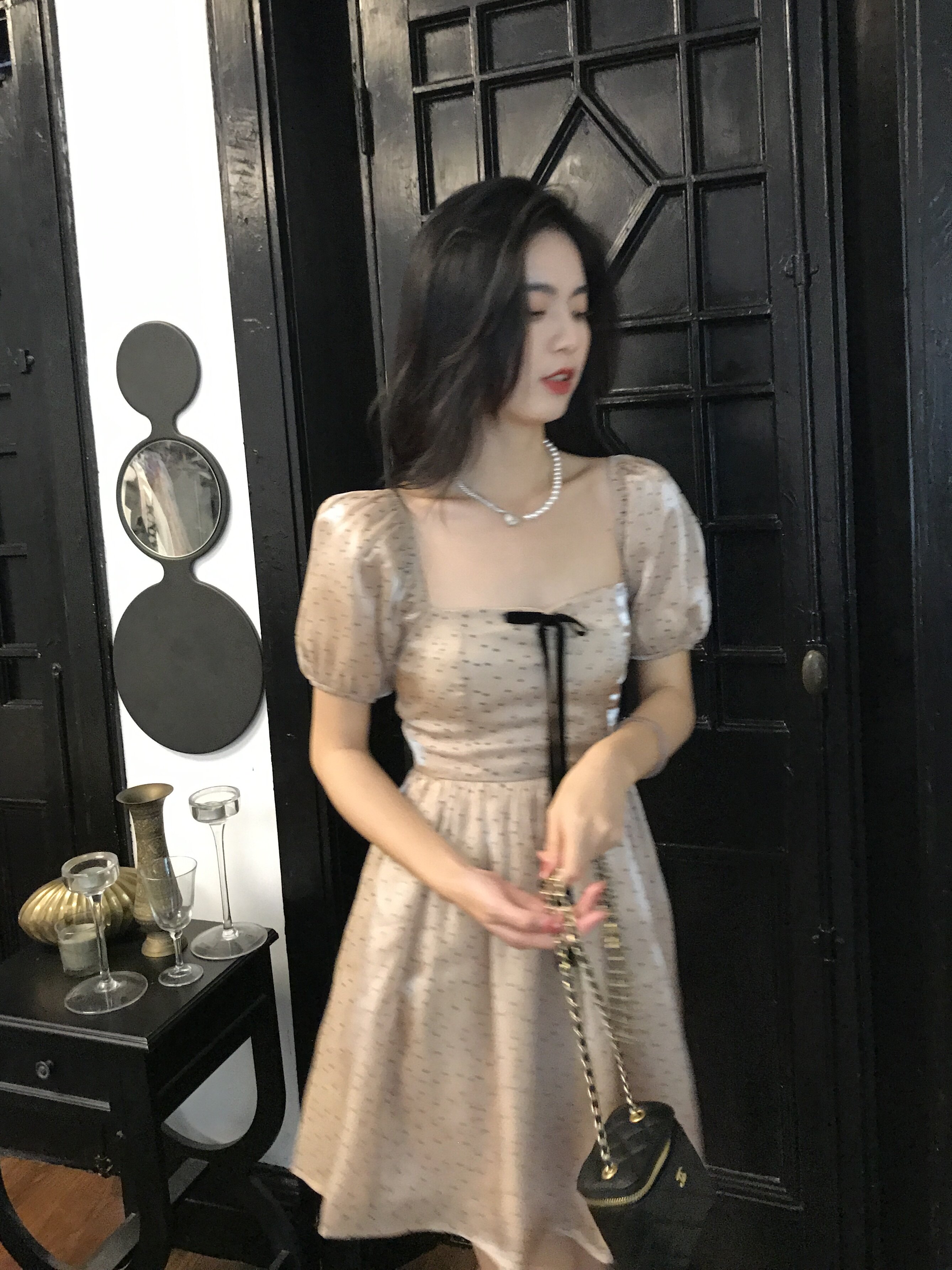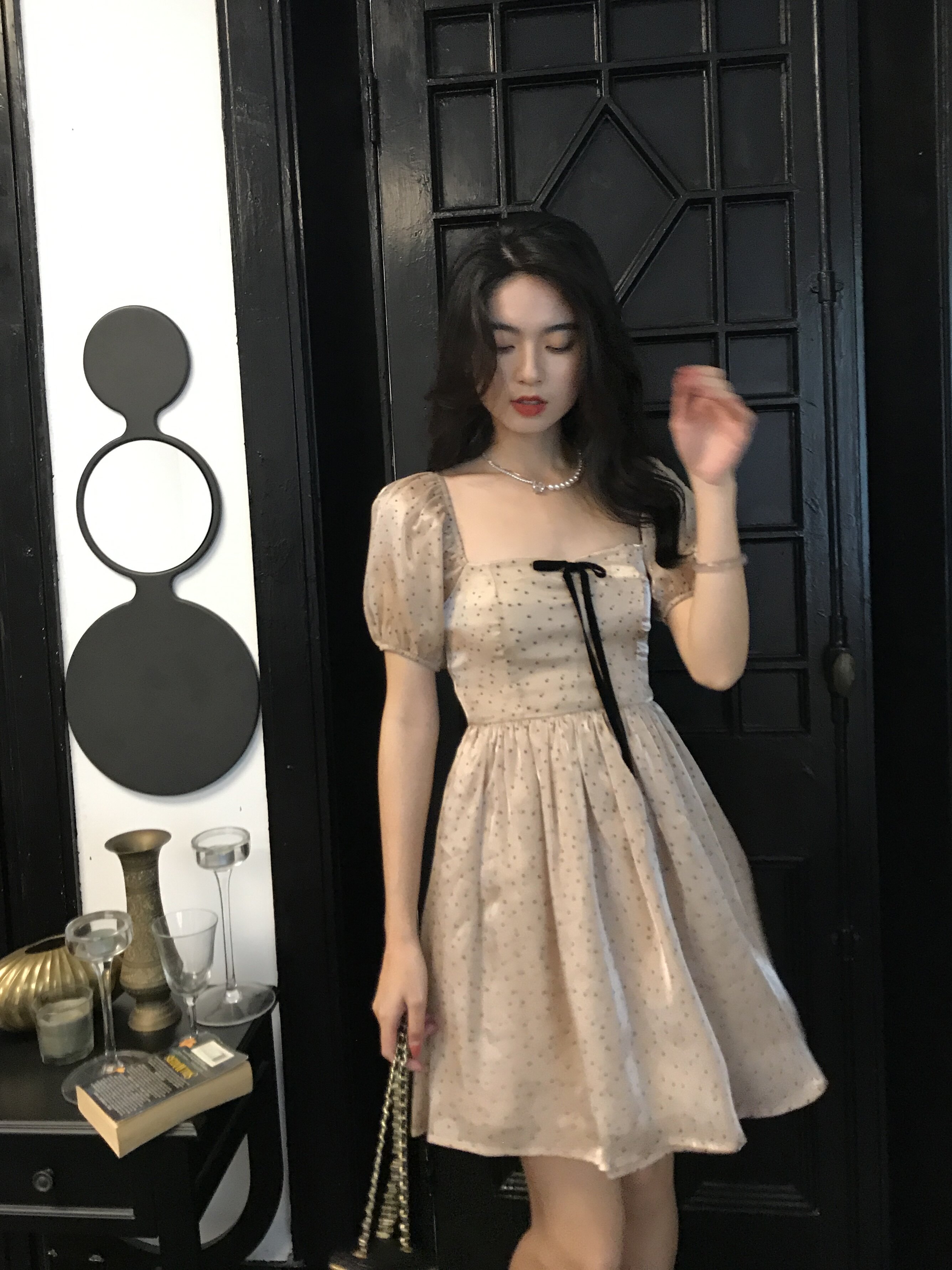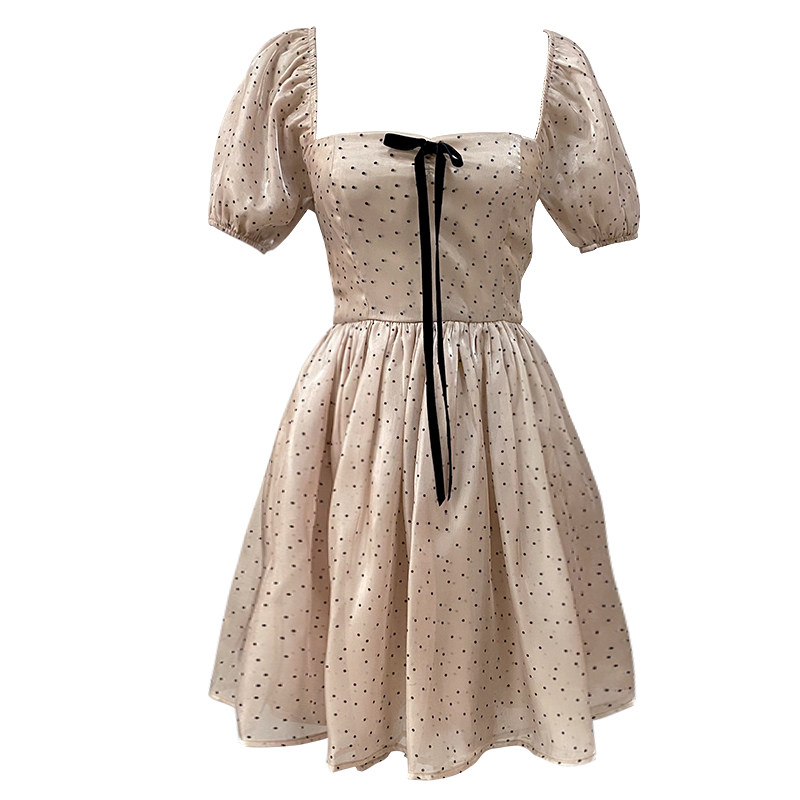 Ретро платье, юбка с бантиком, французский стиль, рукава фонарики, юбка-пачка