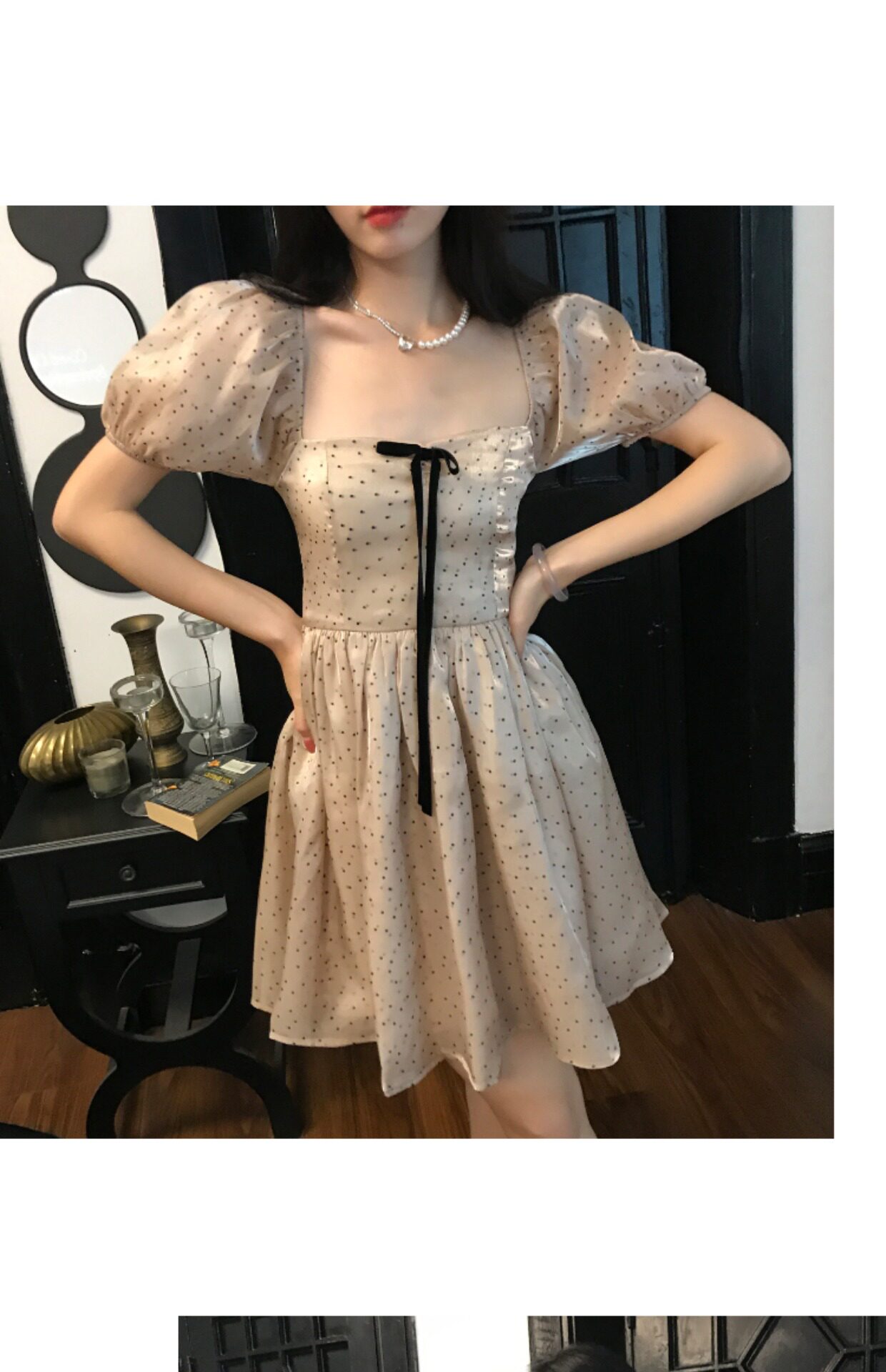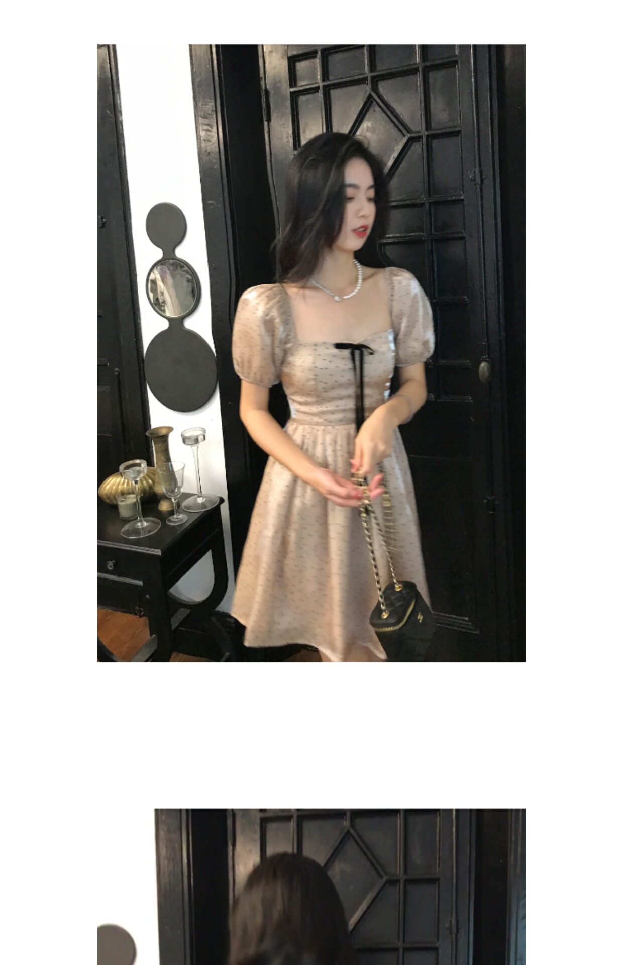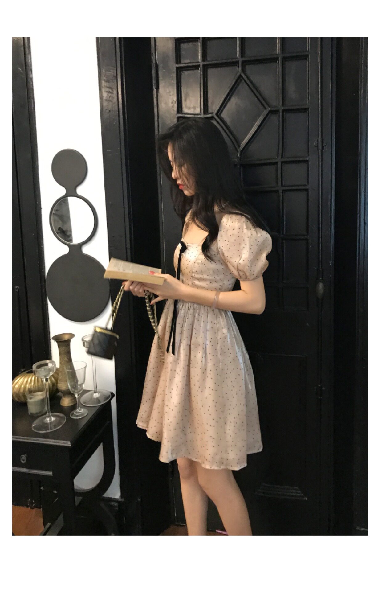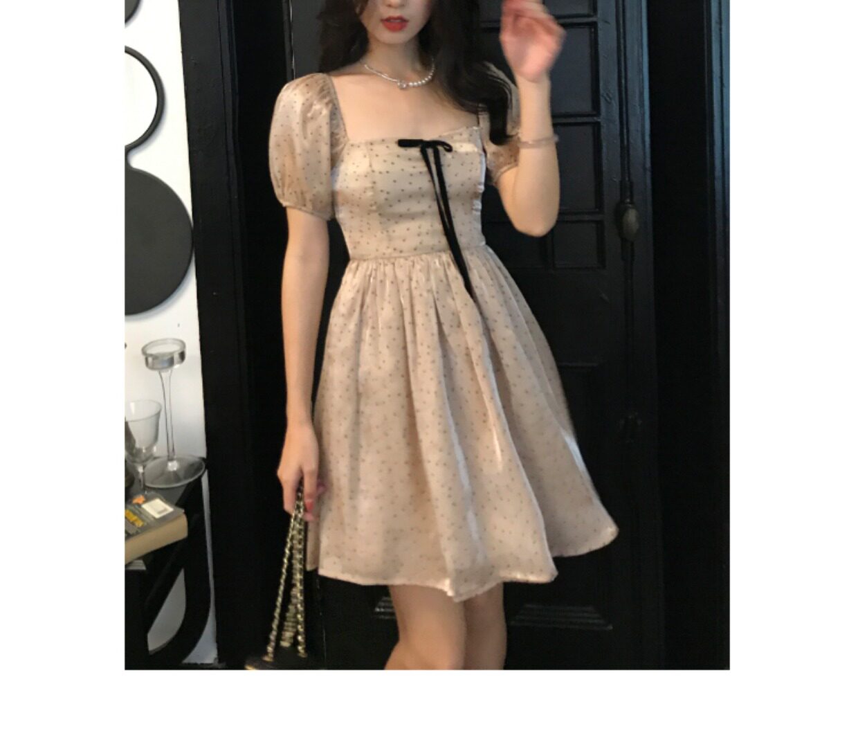 Ретро платье, юбка с бантиком, французский стиль, рукава фонарики, юбка-пачка