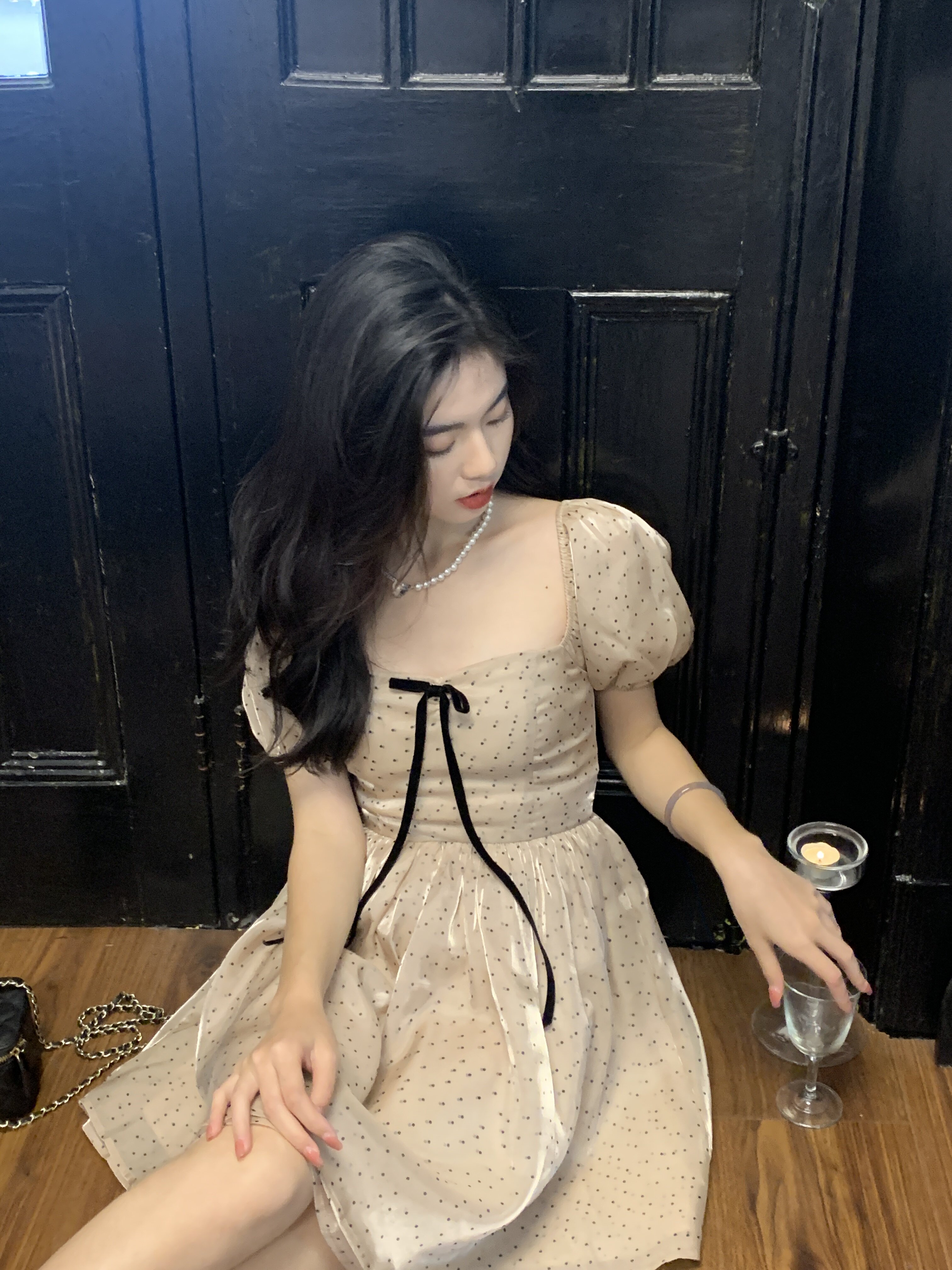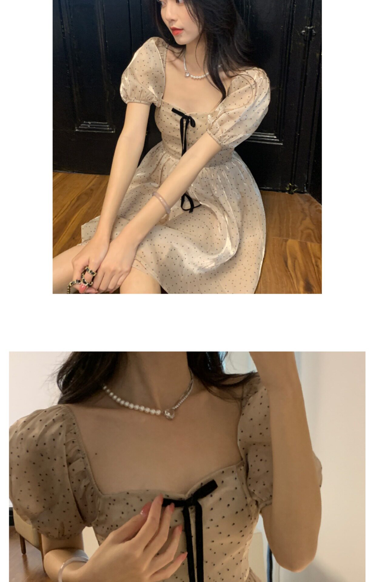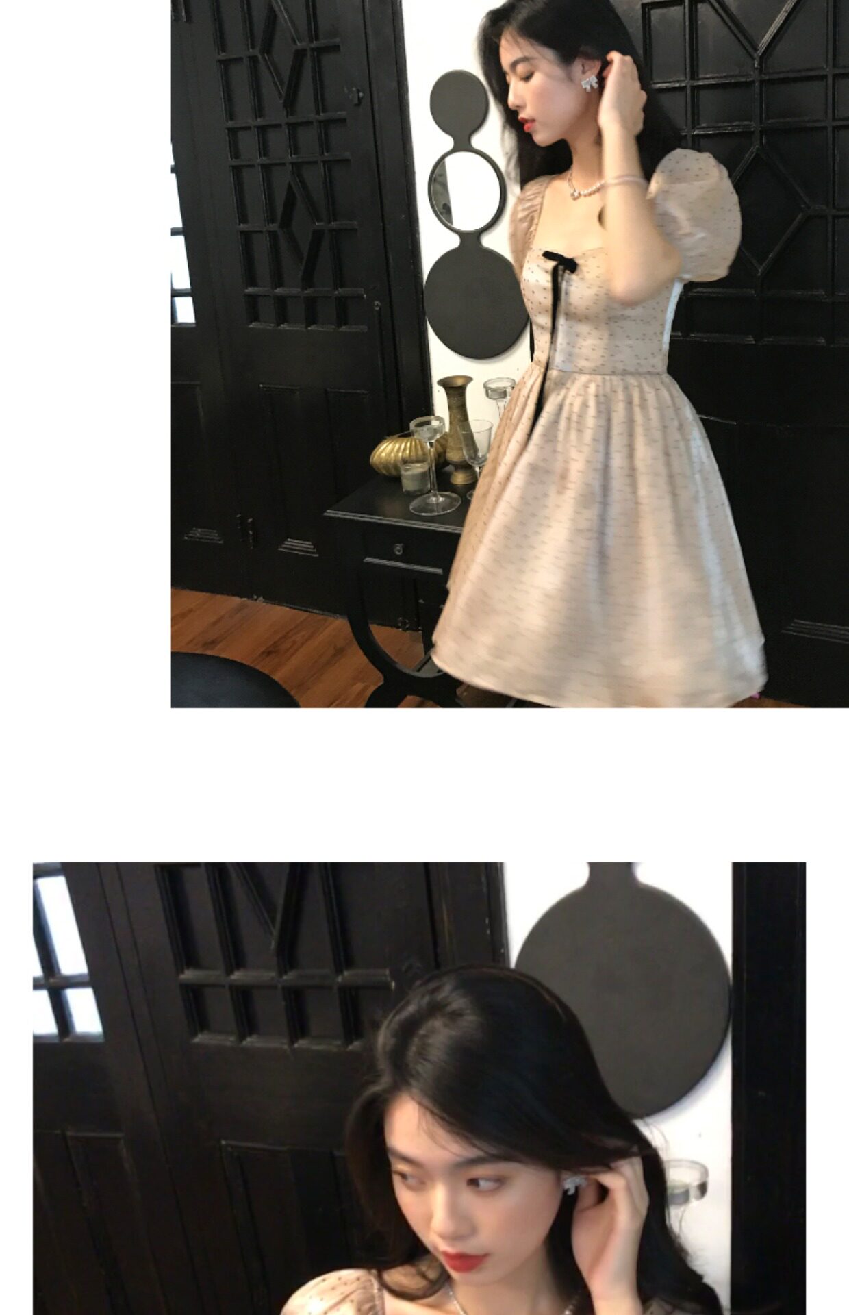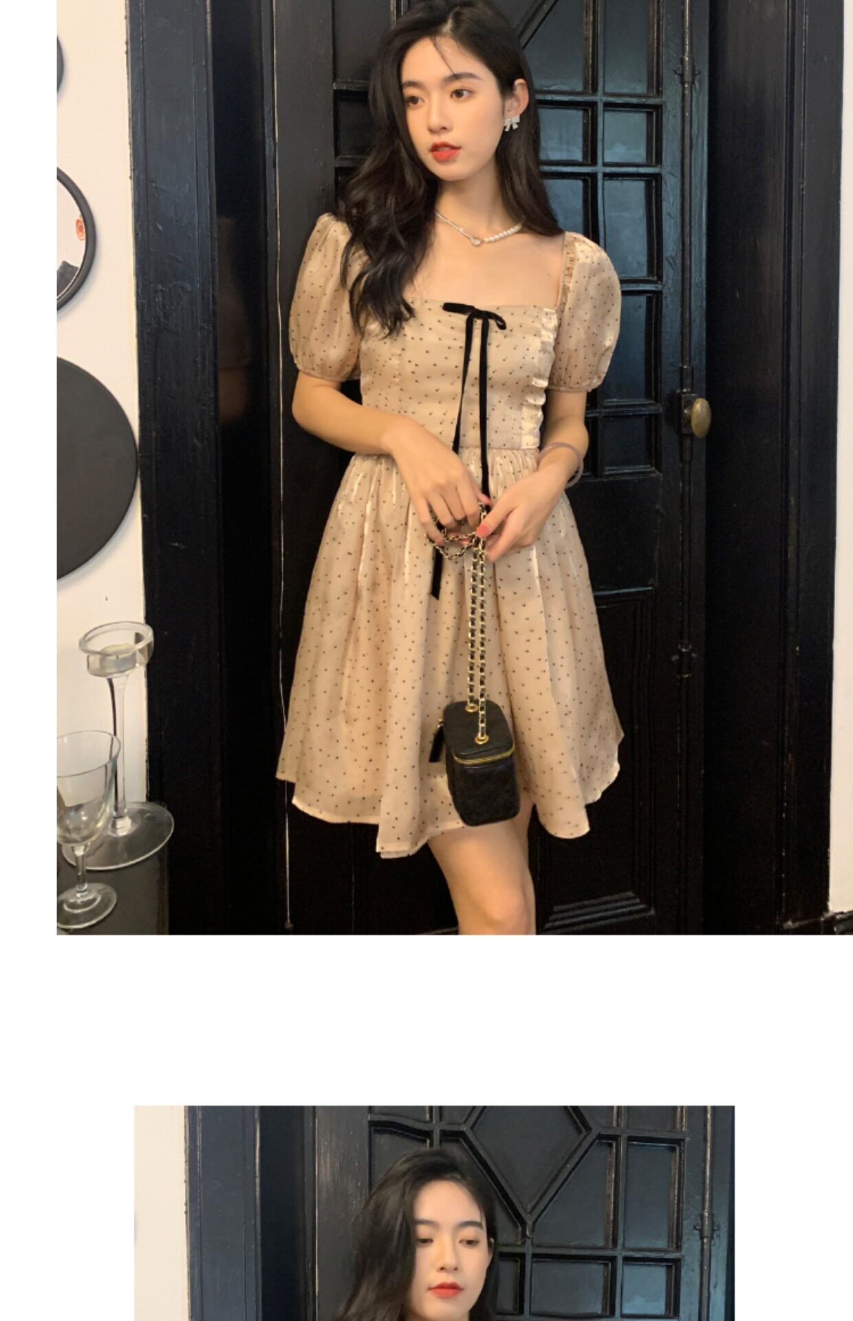Ретро платье, юбка с бантиком, французский стиль, рукава фонарики, юбка-пачка
