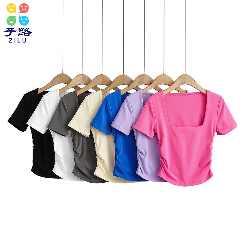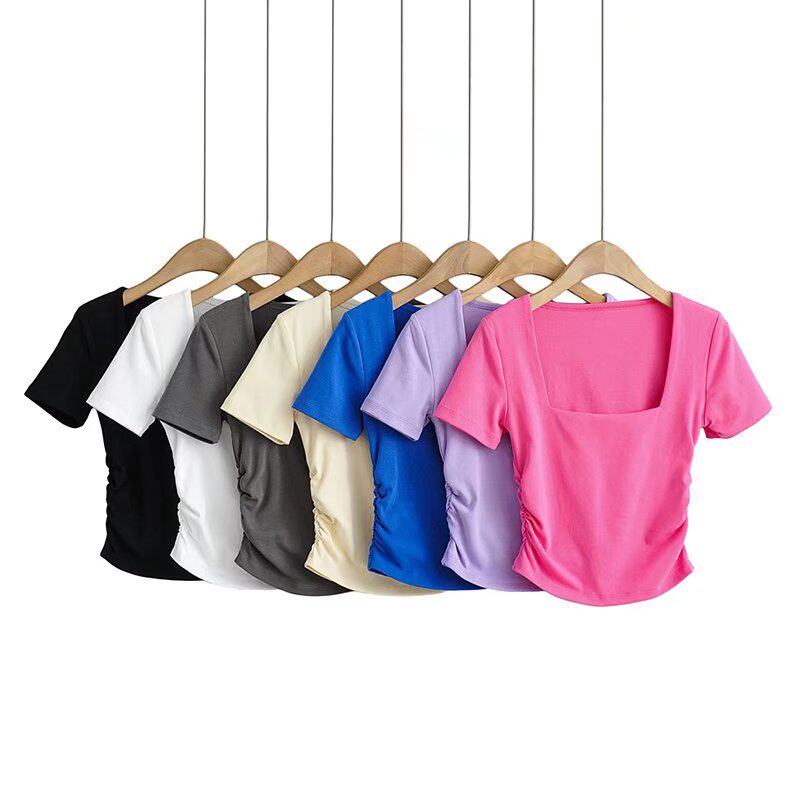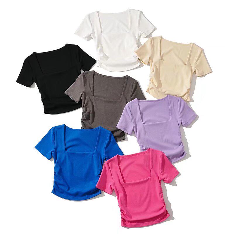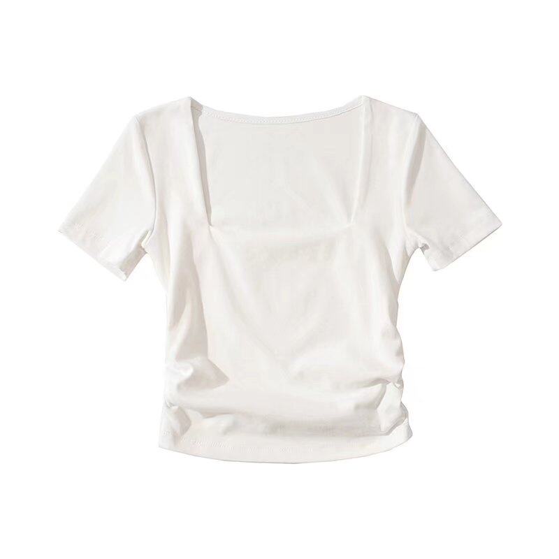 Ретро базовая короткая изогнутая футболка, европейский стиль, квадратный вырез