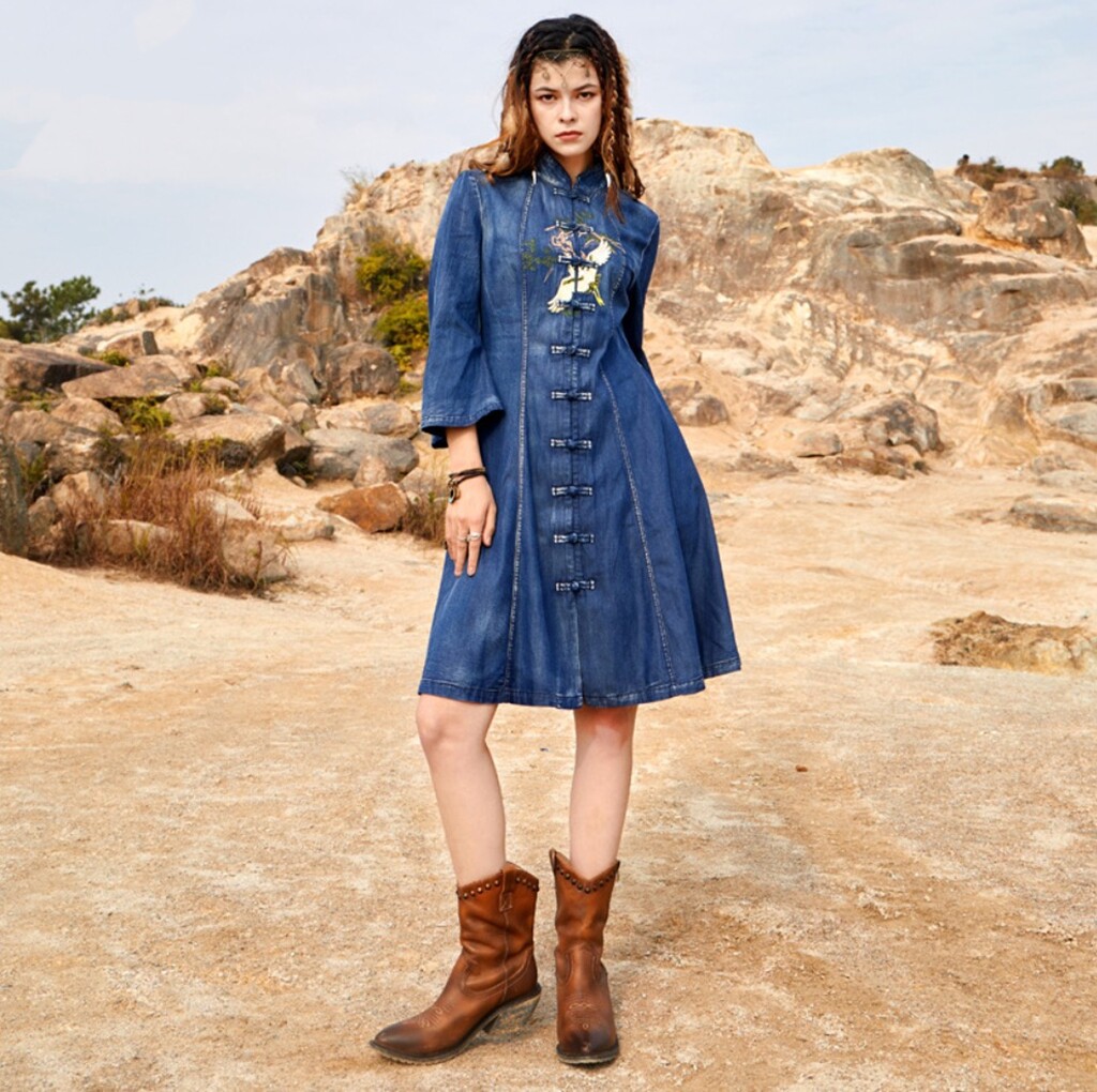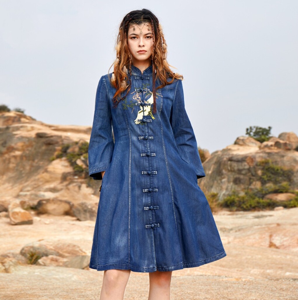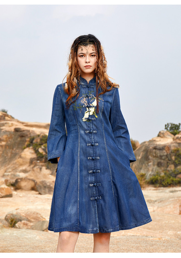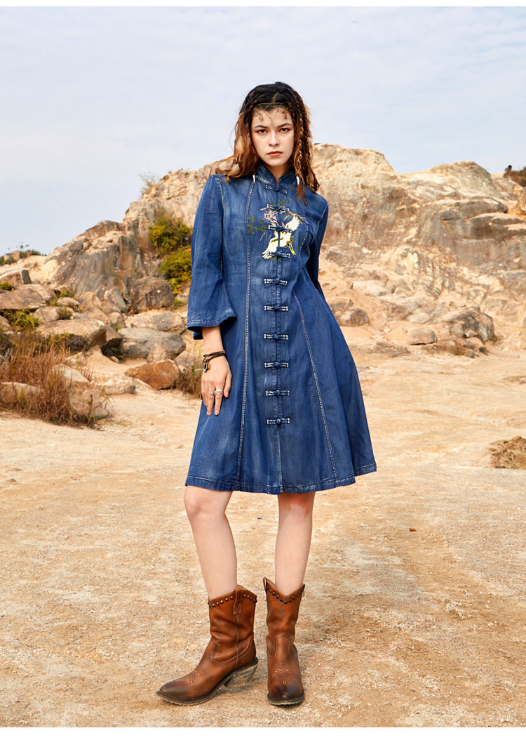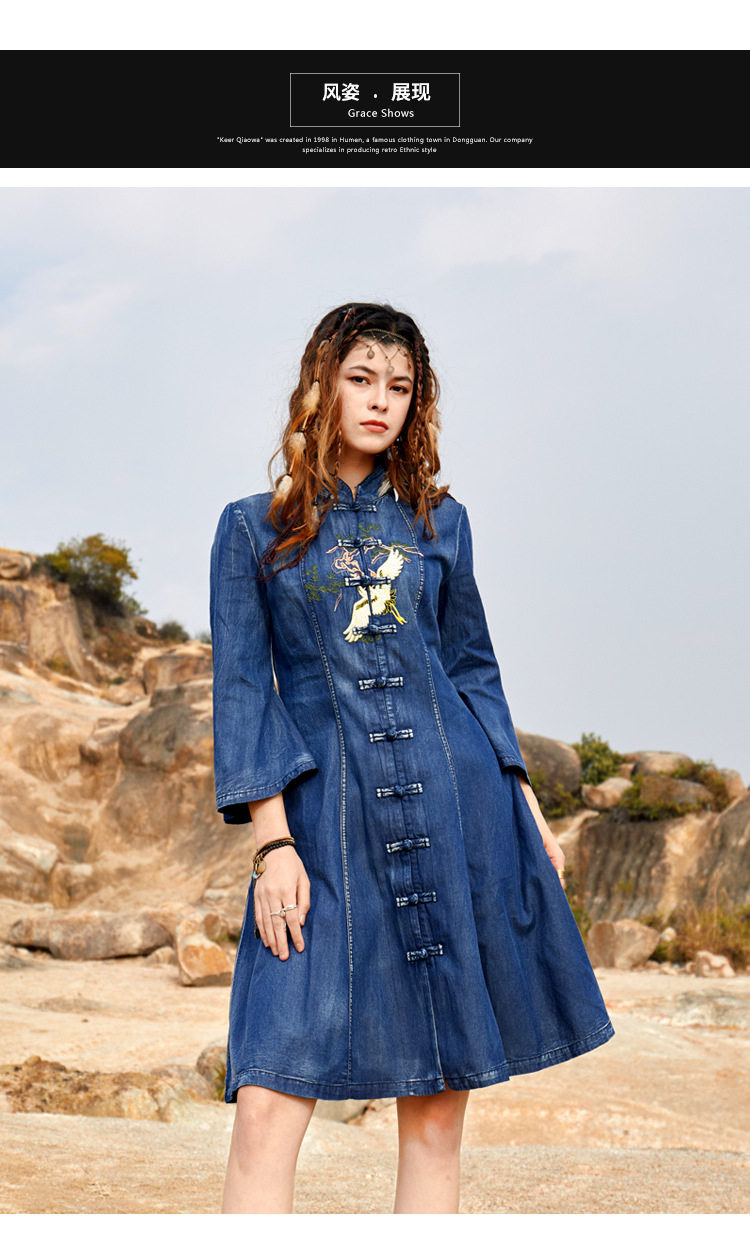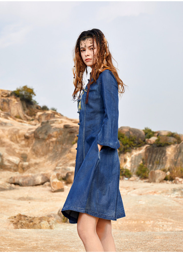 Ретро джинсовое платье, этнический мегафон, мини-юбка, с вышивкой, большой размер, этнический стиль, подходит для подростков