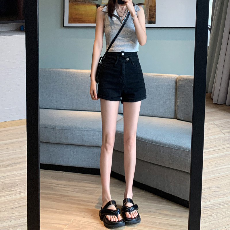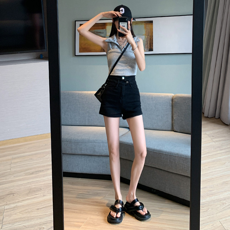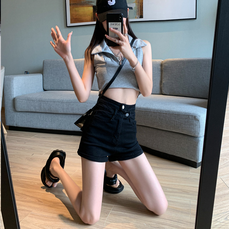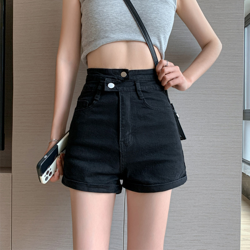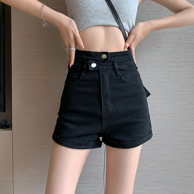 Летние черные цветные приталенные эластичные джинсовые шорты, штаны, коллекция 2023, большой размер, в обтяжку