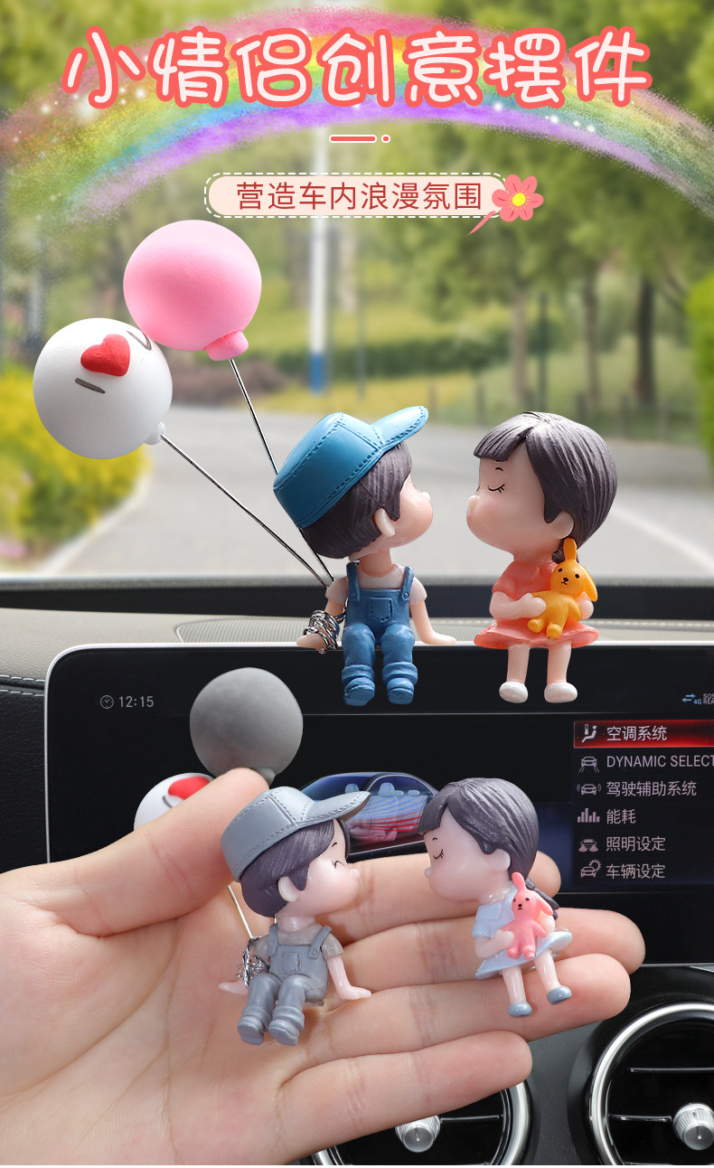 - [Синяя и розовая пара + воздушный шар] Центральная консоль/зеркало заднего вида/украшение дисплея