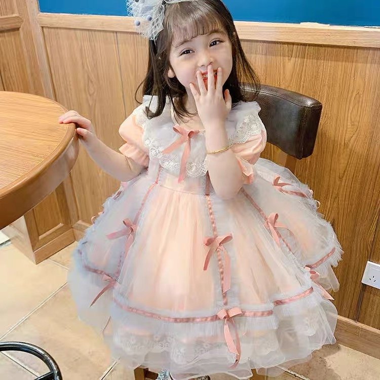Летний милый наряд маленькой принцессы, вечернее платье для девочек, стиль Лолита, в западном стиле, подарок на день рождения