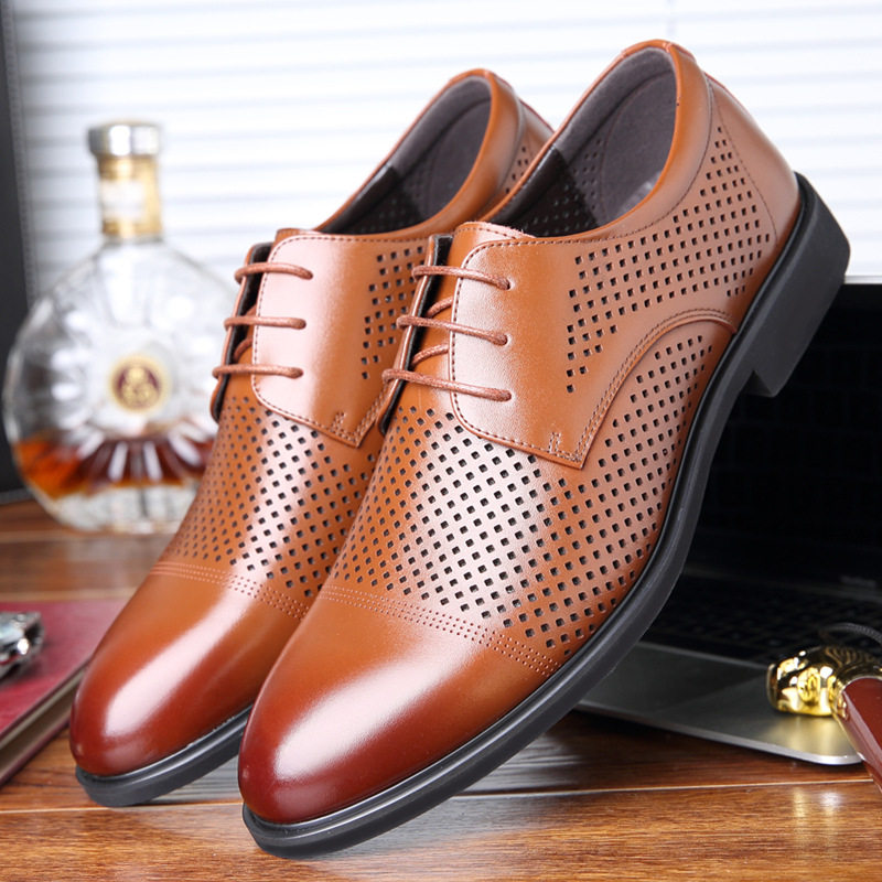 Летний дышащий коричневый пиджак классического кроя, мягкая подошва, из натуральной кожи