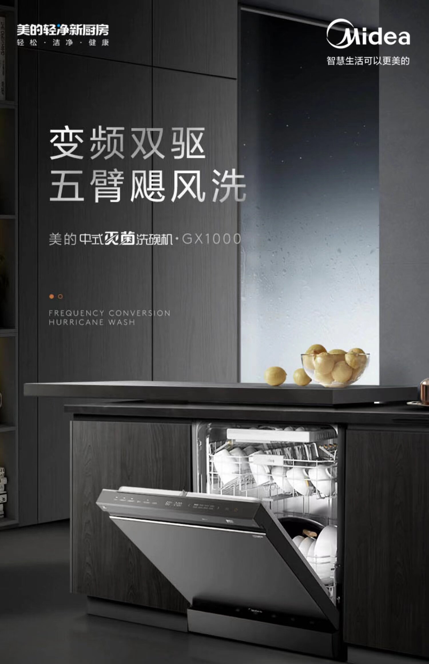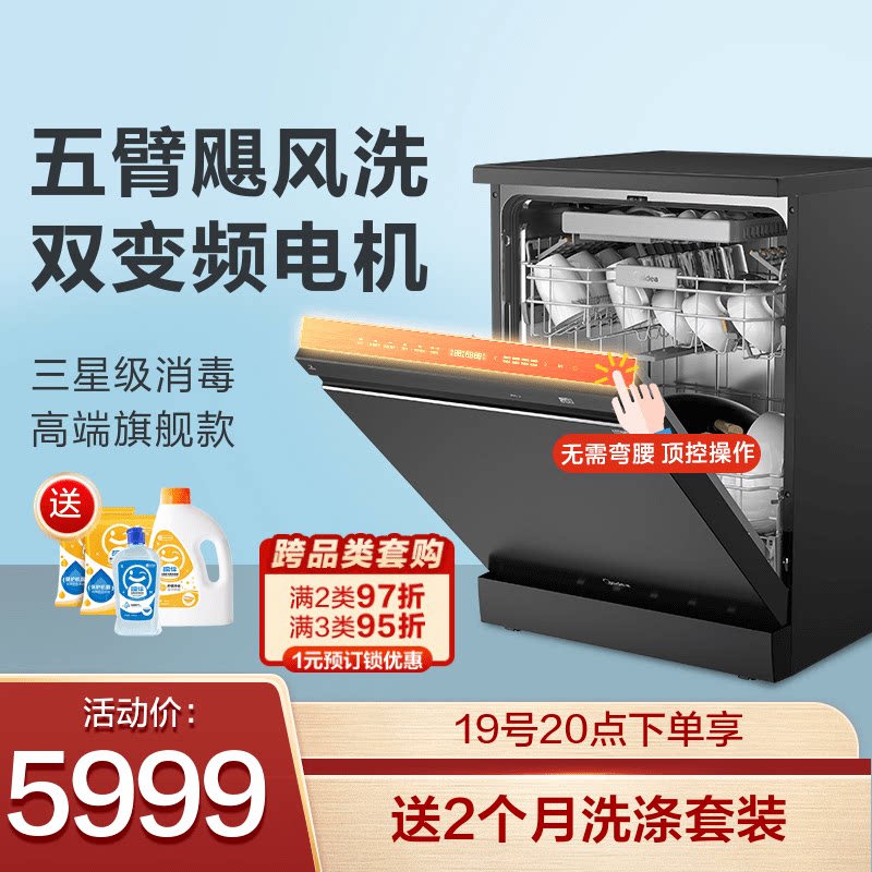 Посудомоечная машина Midea Aurora GX1000 Full -Automatic встроенное пять -мытье ураганов 13 наборов и 16 комплектов