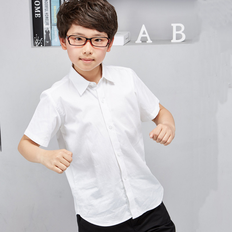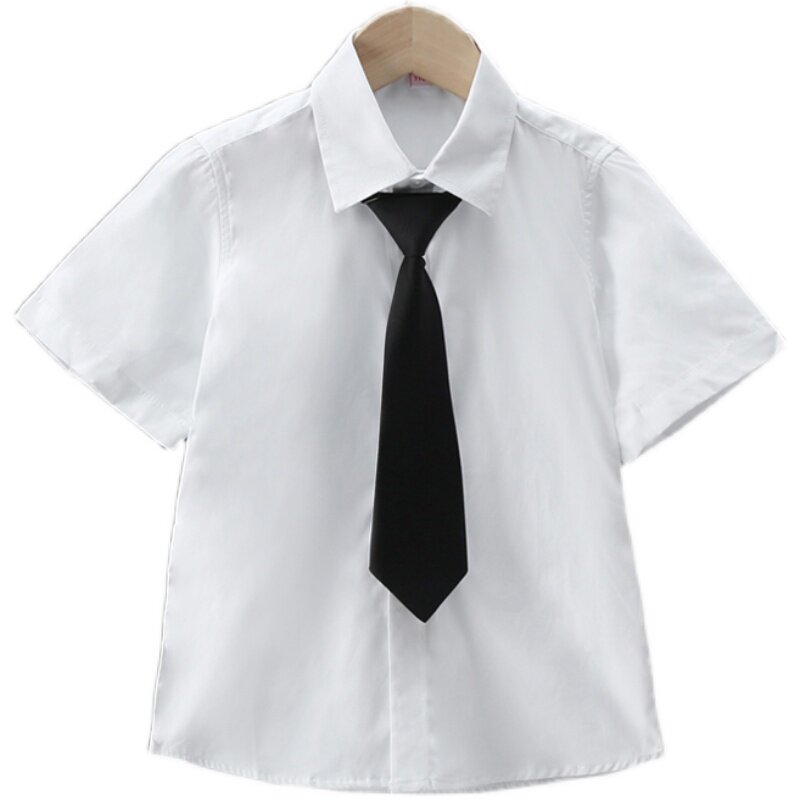 Хлопковая рубашка для мальчиков, летняя форма для школьников и студентов, детский костюм, короткий рукав